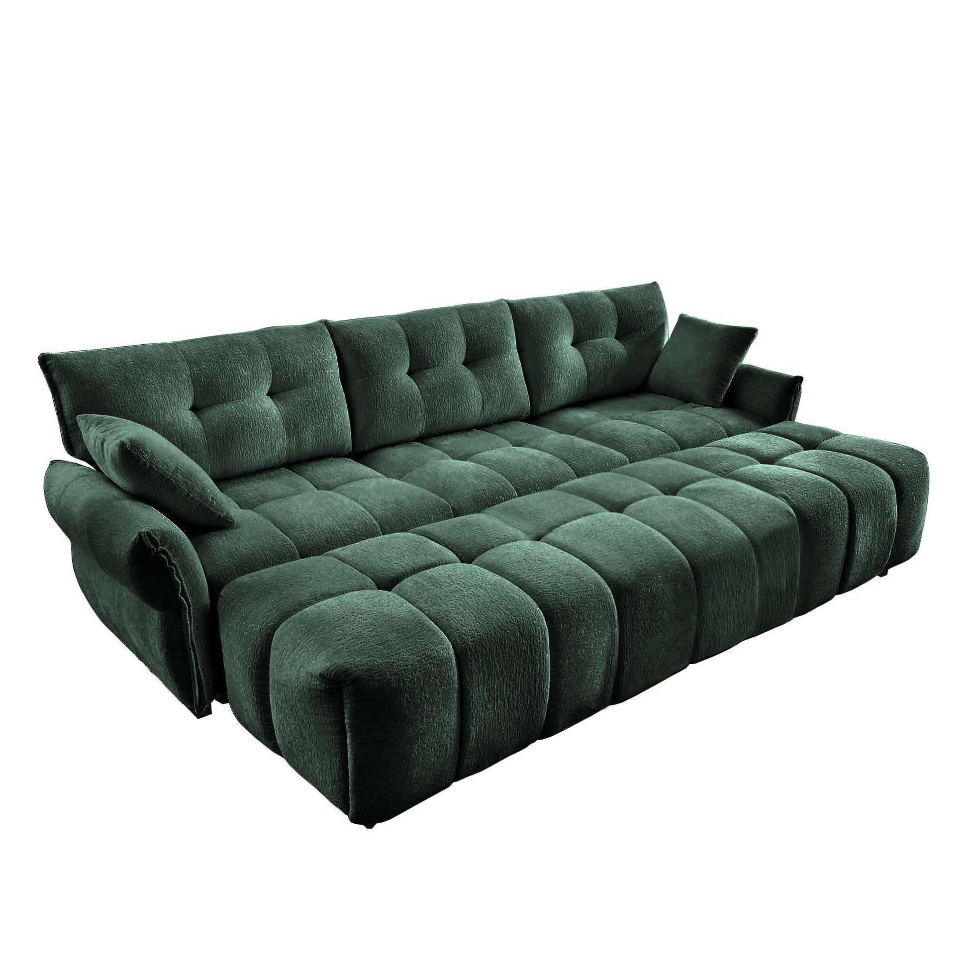 Elegant Textured 3 Seater Sofa Set With 3 Ottomans And Pillows Frame - Green