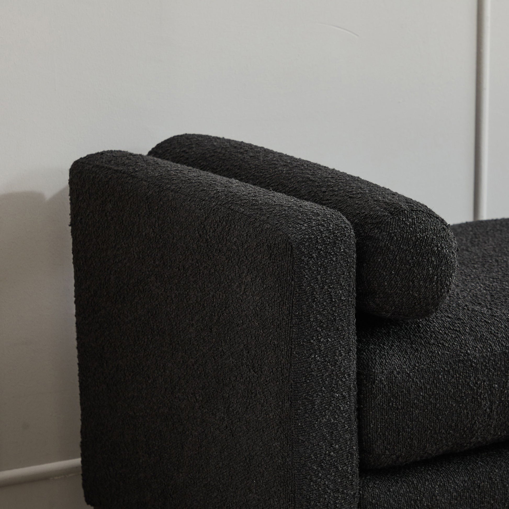 Elegant Upholstered Bench Daybed Ottoman With Nature Wood Legs & Bolster Pillows - Black Boucle