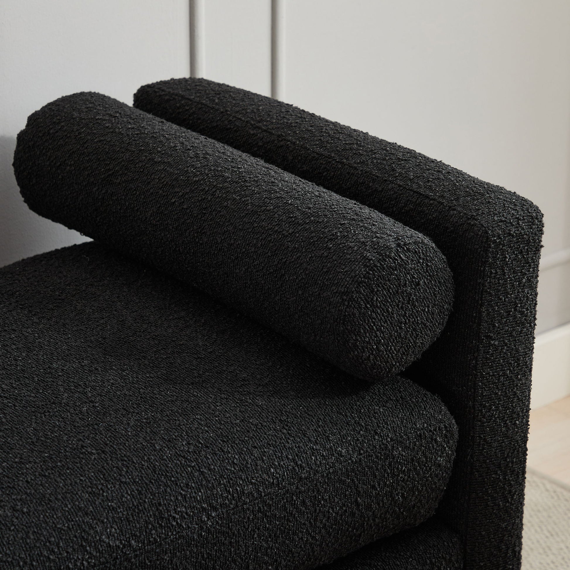 Elegant Upholstered Bench, Daybed, Ottoman With Wood Legs & 2 Bolster Pillows - Black Boucle