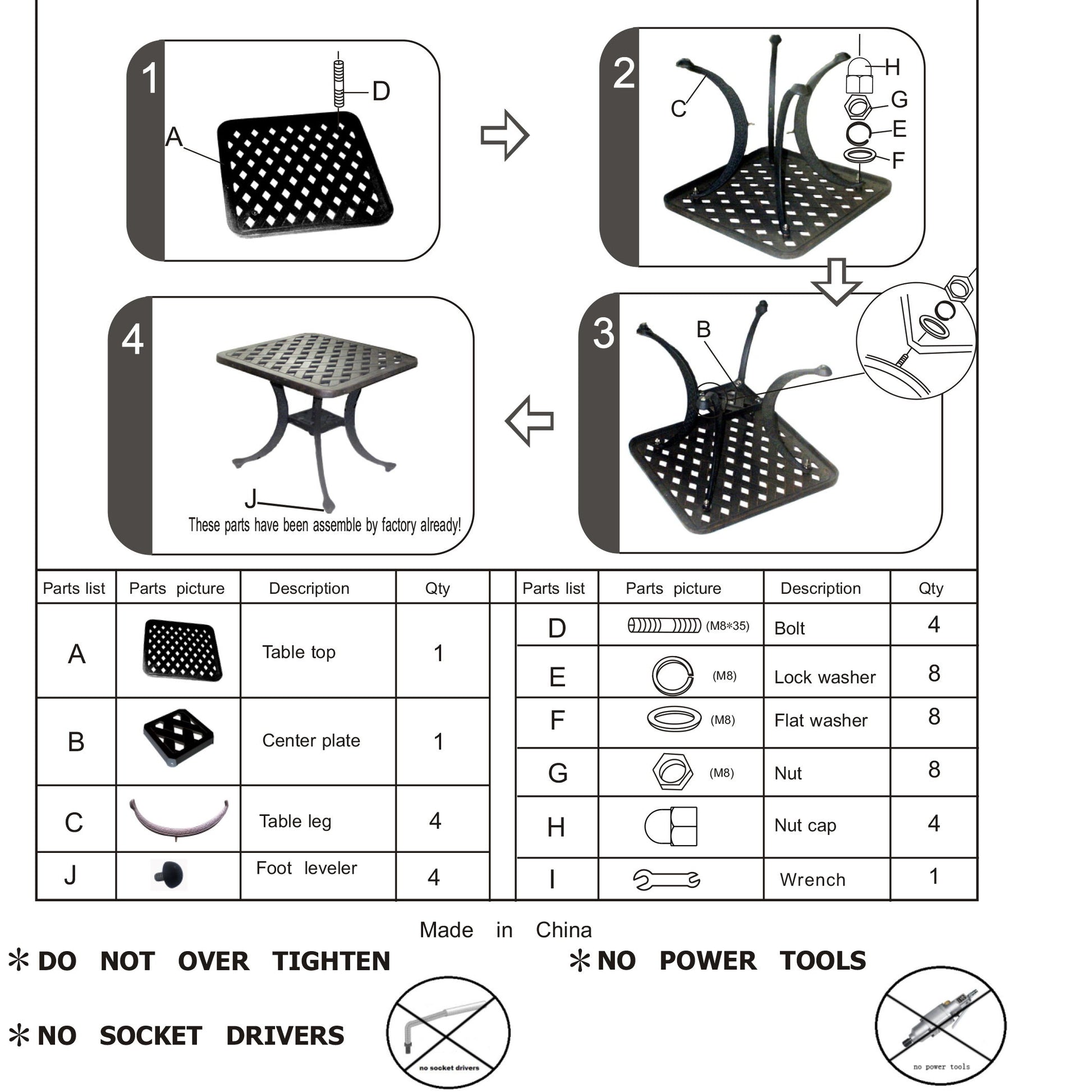 - PERFECT SIZE AND CAPACITY: Measuring 21.06 in. W x 21.06 in. H x 21.06 in. D, this square-cast aluminum end table provides ample space for your outdoor essentials. With a weight capacity of 100 lbs., it offers sturdy support for various items.