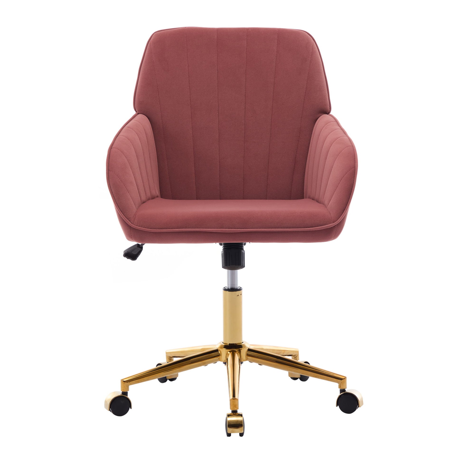 Ergonomic Swivel Office Chair, Comfortable Velvet Backrest Seat, Adjustable For Home And Bedroom - Rose Red