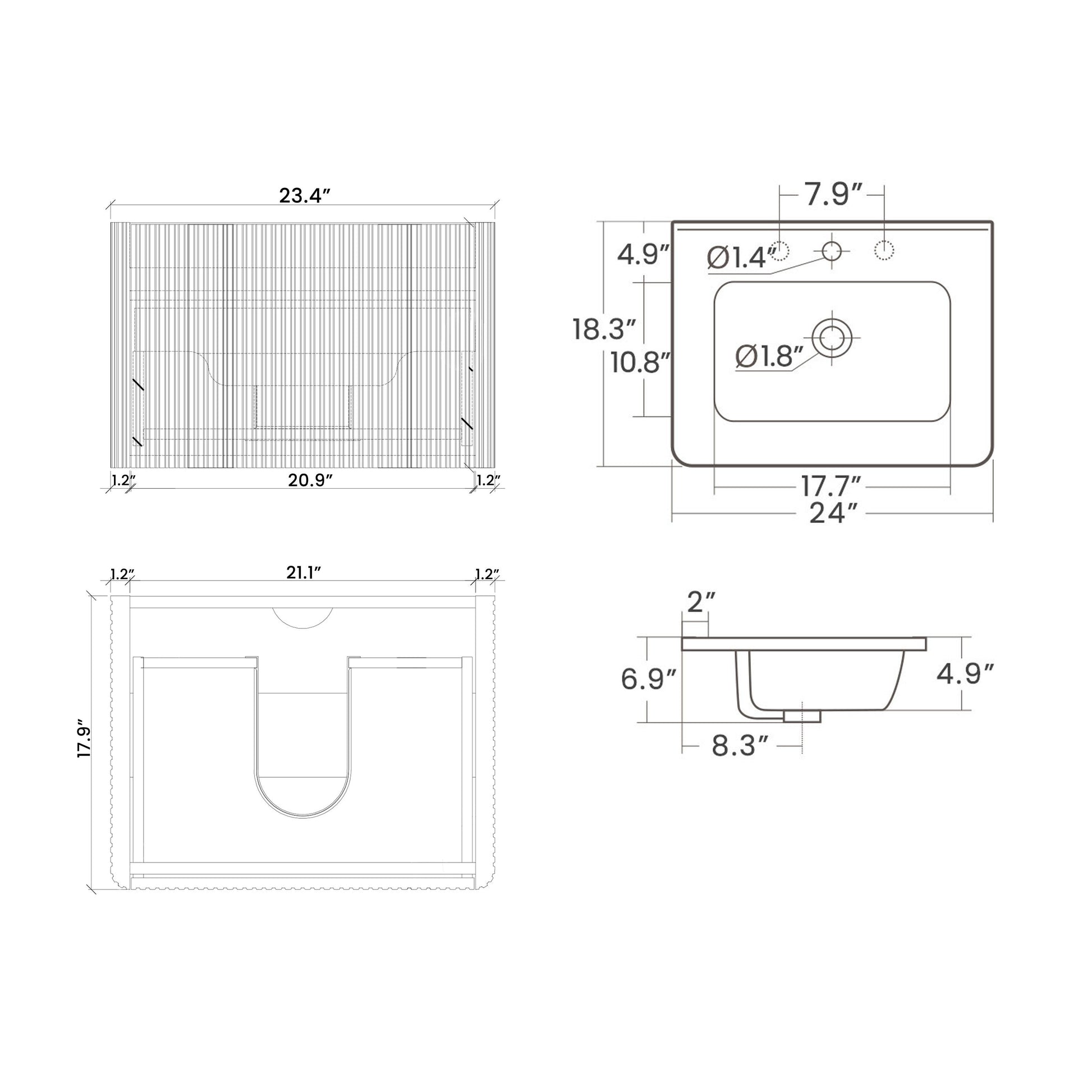 - Glossy White Integrated Ceramic Sink: Includes a glossy white integrated ceramic sink for a seamless and elegant design.