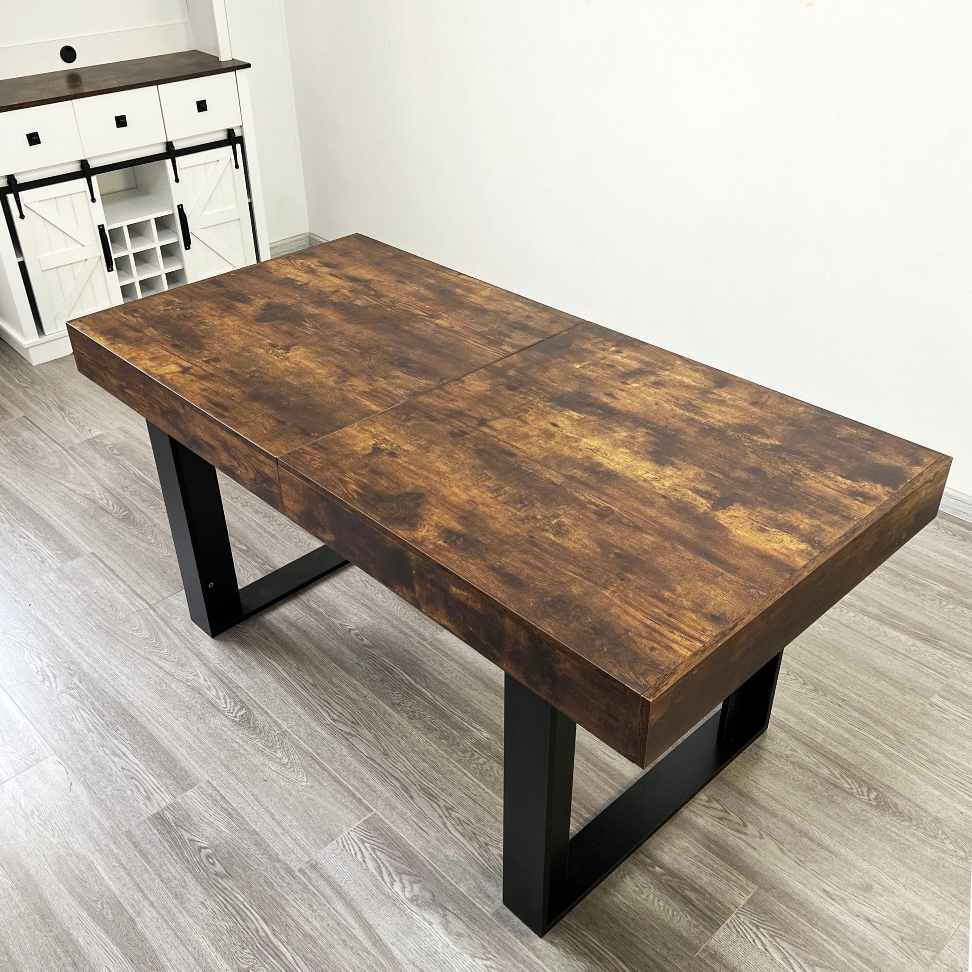 Extendable Dining Room Table For 6 8 10, Modern Farmhouse Wooden Kitchen Expanding Table, Long Large Expandable Dining Room Conference Table - Deep Rustic Brown
