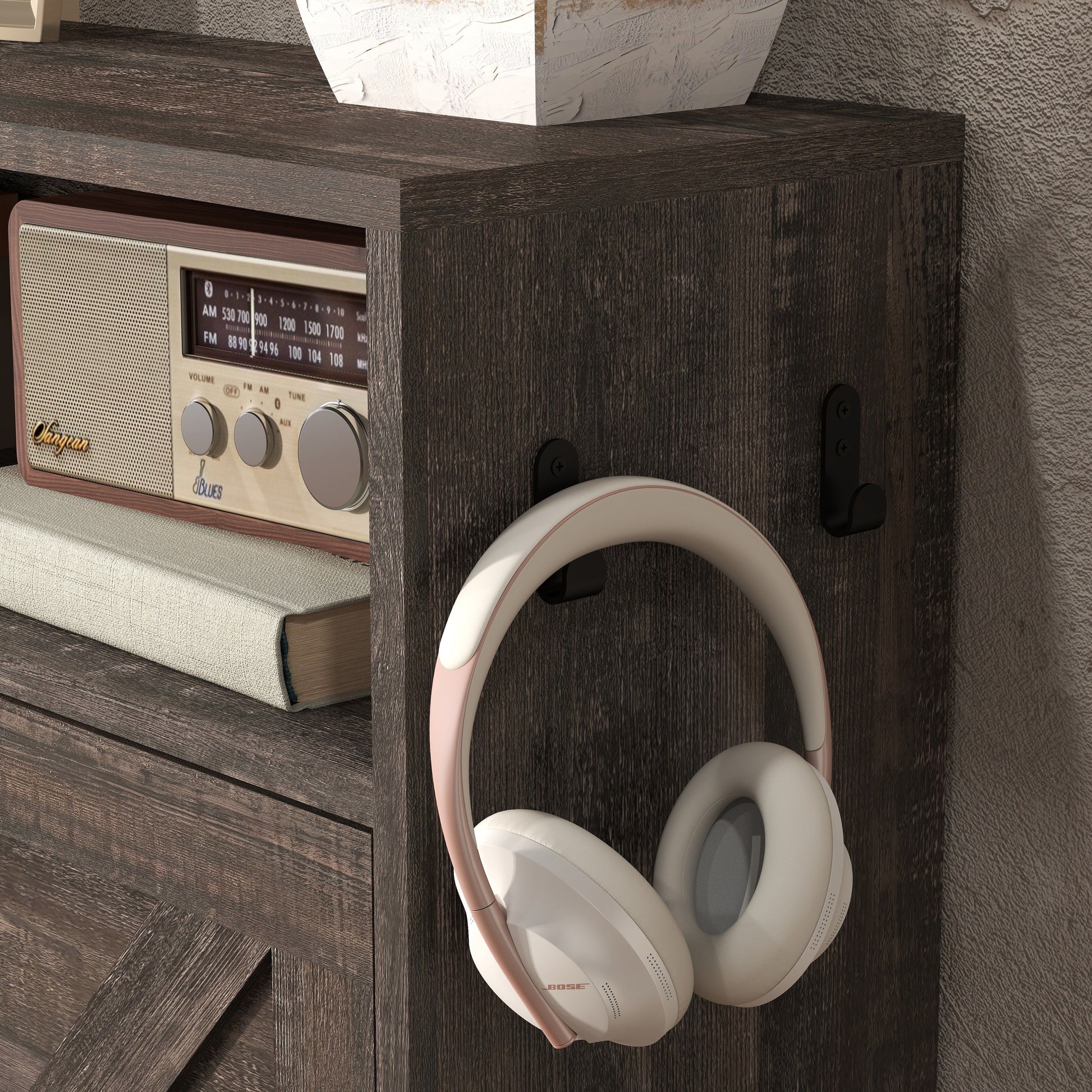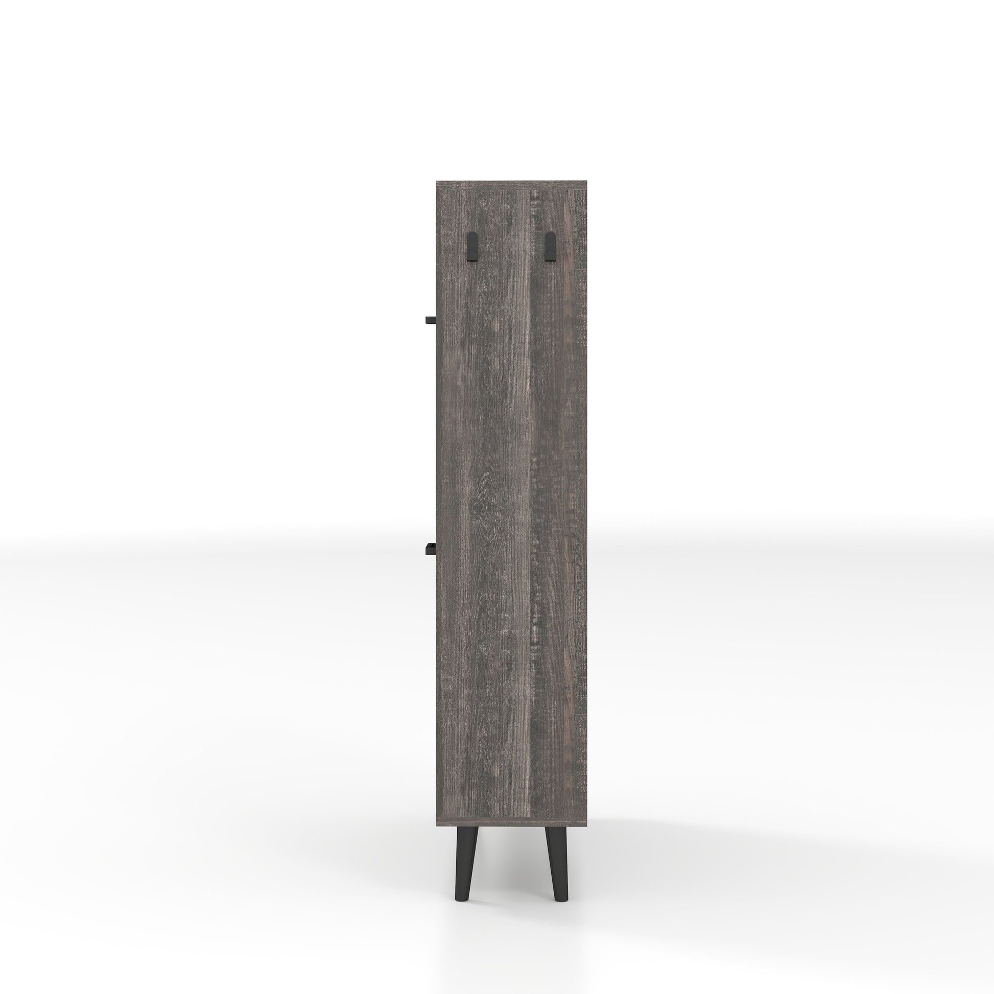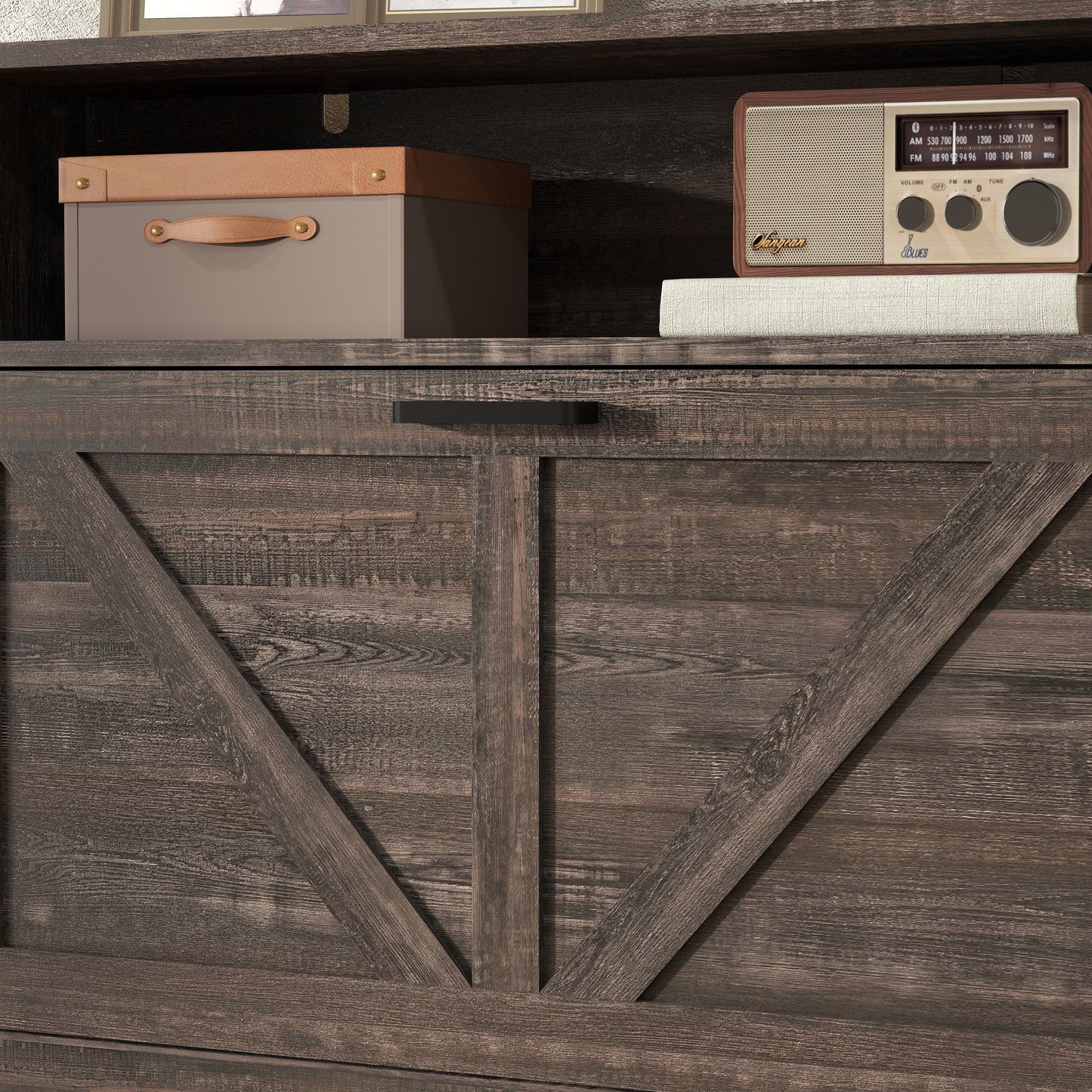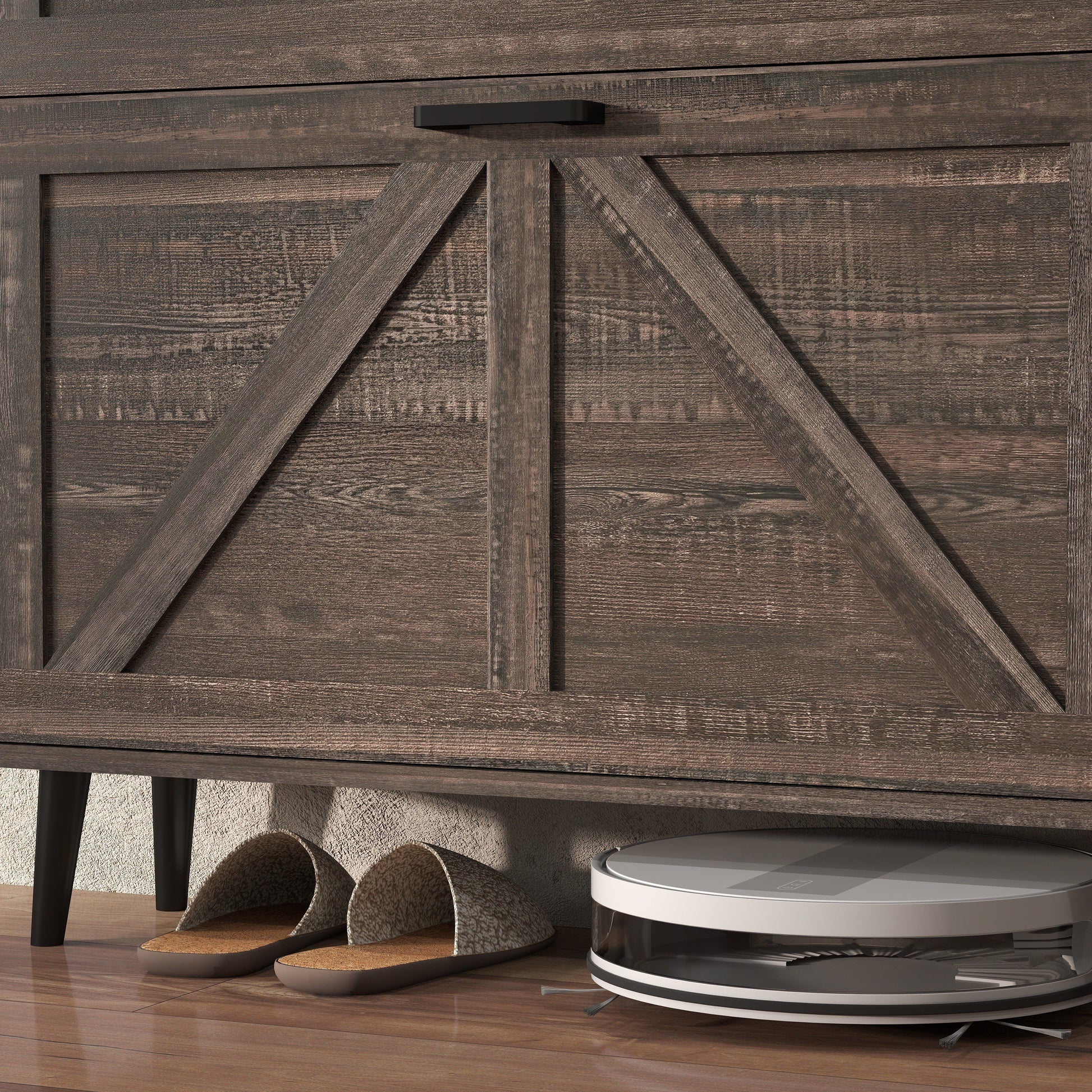 Farmhouse Shoe Storage Cabinet With Barn Door Design, 2 Flip Drawers, Hooks - Dark Oak
