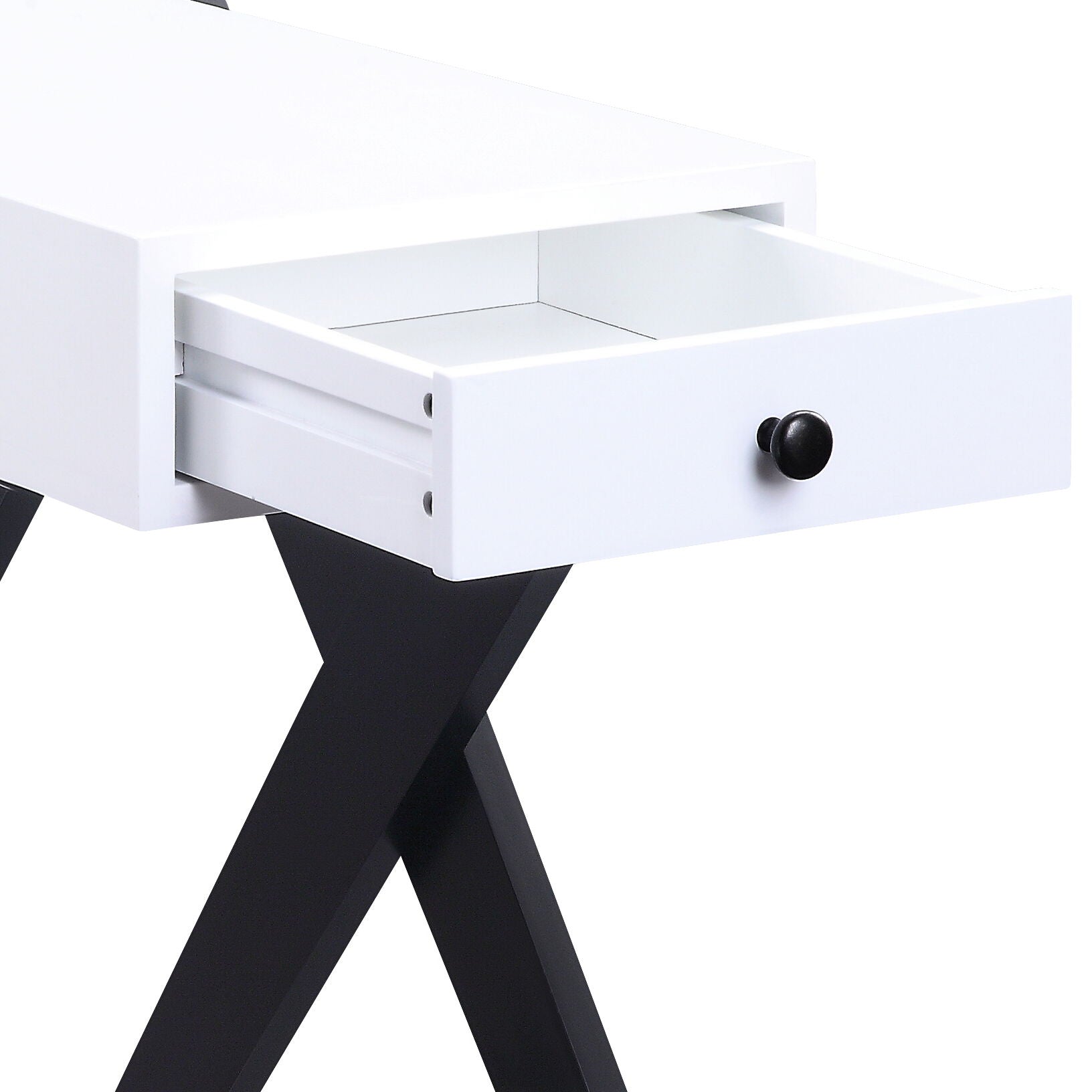 - Modern Design: This accent table showcases a sleek rectangular tabletop in a crisp white finish, enhanced by solid black X-shaped side legs, creating a bold and stylish look that complements contemporary interiors.