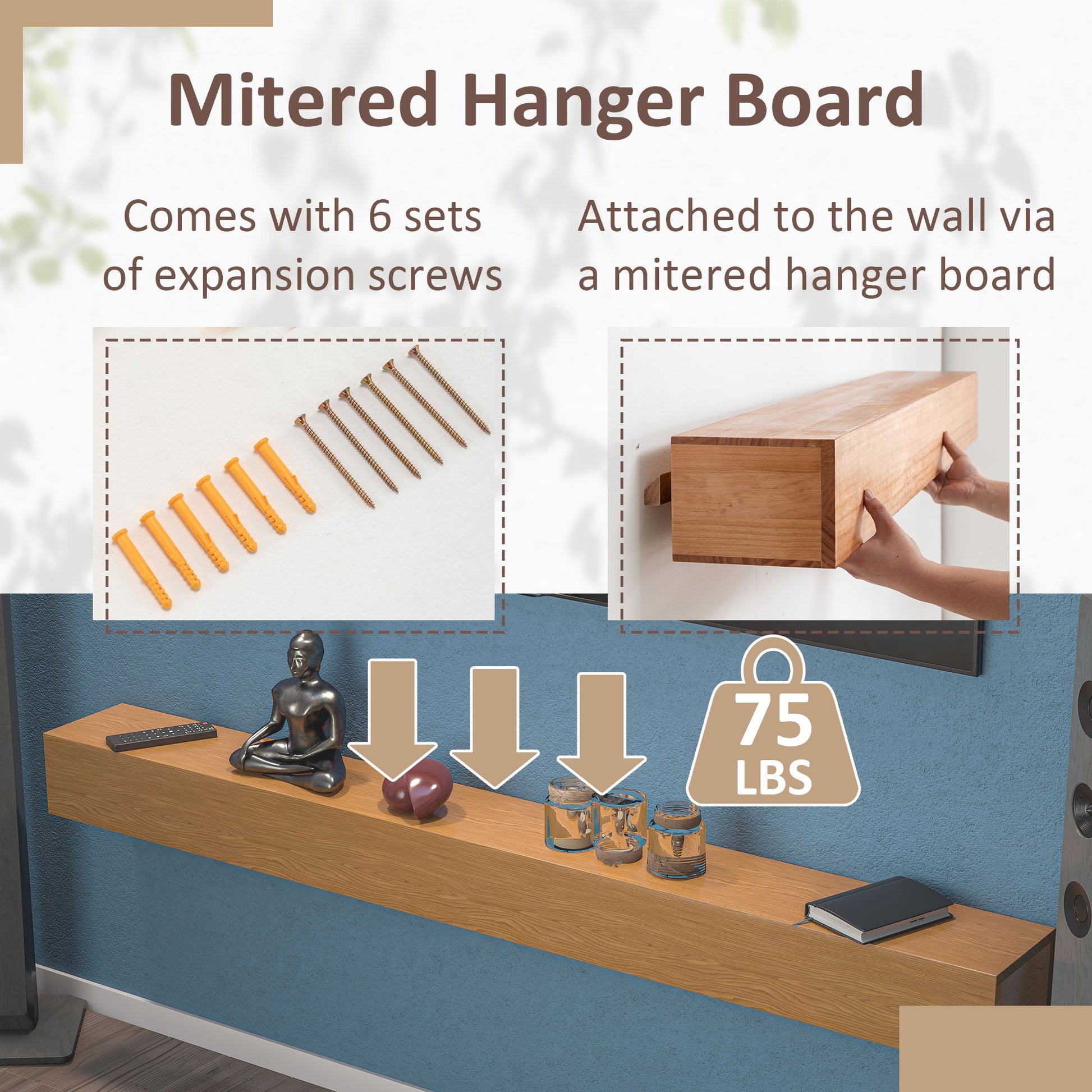 Fireplace Mantel Wooden Wall Mounted Floating Shelf 8" Deep Solid Pine Wood - Natural