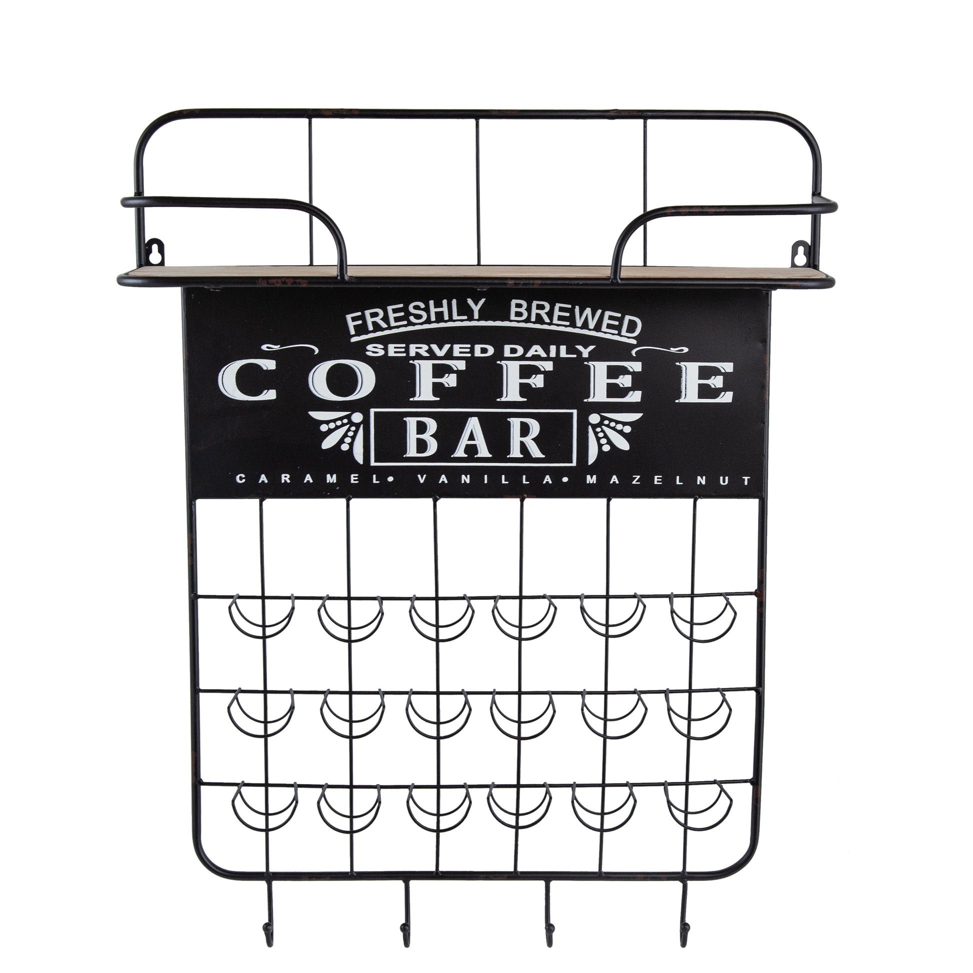 - Multi-Functional Design: This coffee bar shelf features 18 slings for k-cups or coffee pods, four hooks for mugs and cups, and a spacious shelf for storing syrup, sugar, creamer, and a grinder, combining style and functionality.