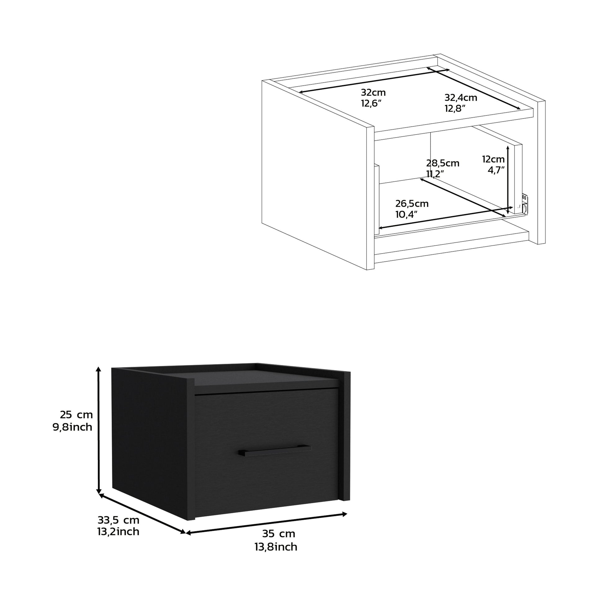 Floating Nightstand, Space Saving Design With Handy Drawer And Surface - Black