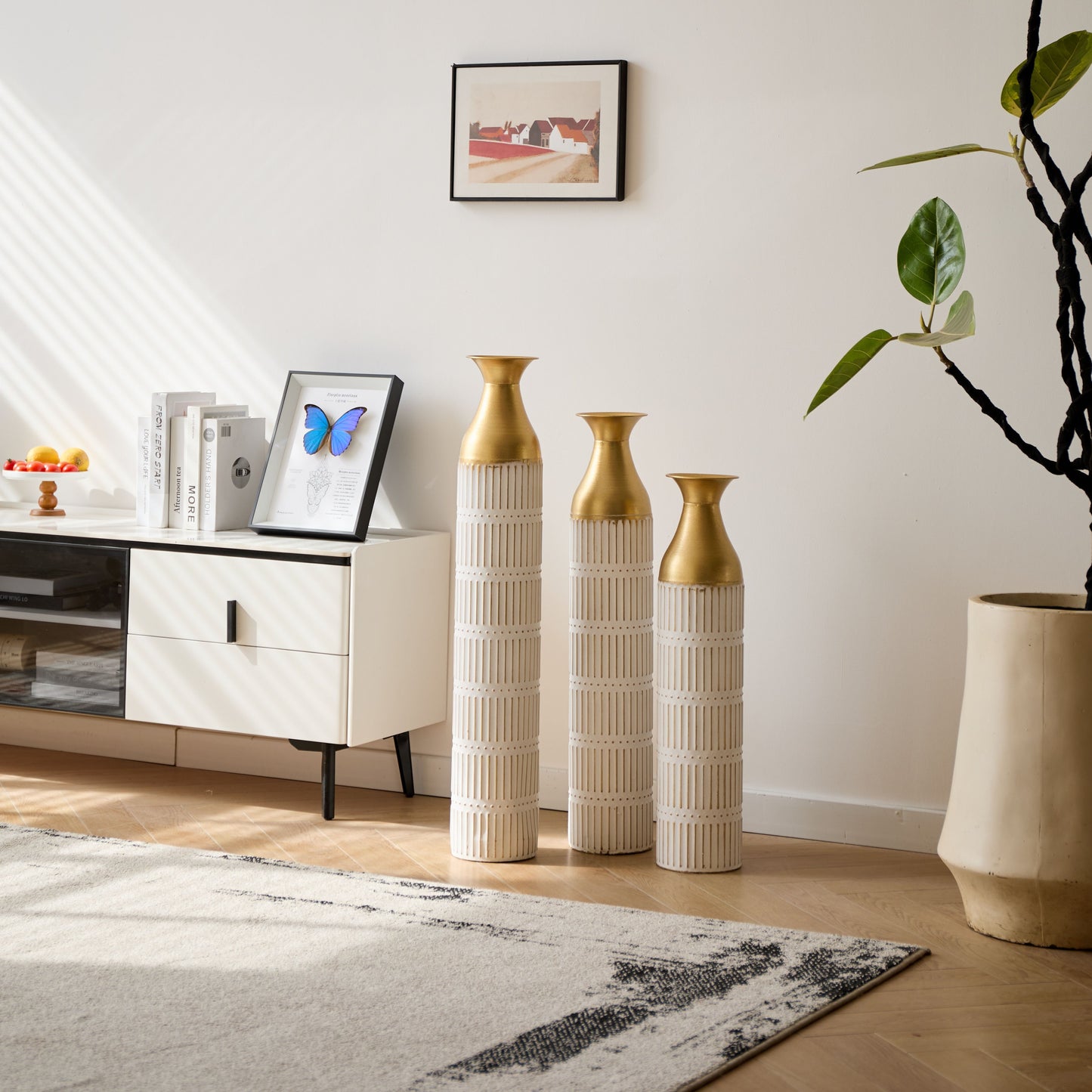 Floor Metal Vases Decorated White Metal Vases (Set of 3) Gorgeous Home Decoration Large Glazed Metal Vases - White