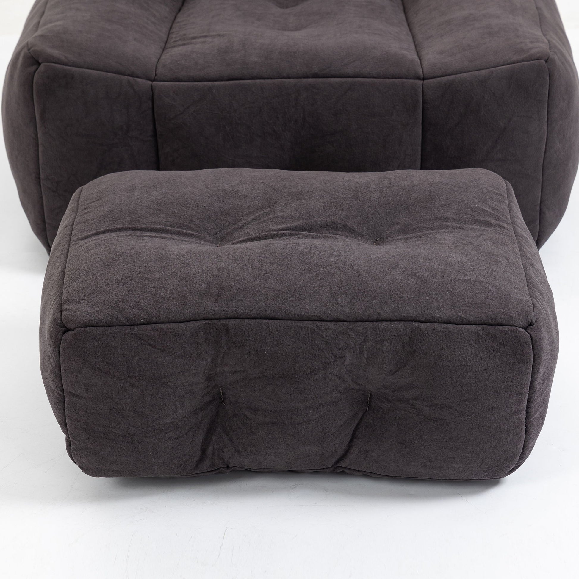 Fluffy Bean Bag Chair, Comfortable Bean Bag For Adults And Children, Super Soft Lazy Sofa Chair With Memory Foam And Ottoman, Indoor Modern Focus Bean Bag Chair For Living Room, Bedroom, Apartment - Black