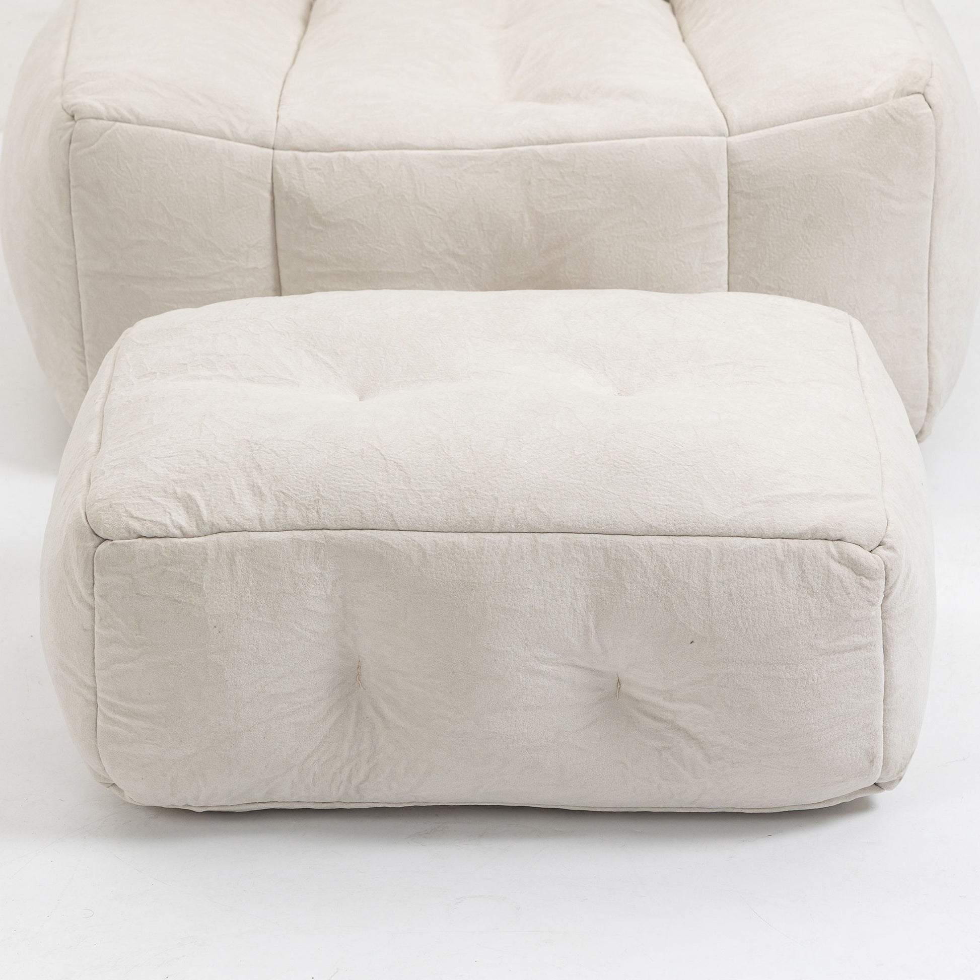 Fluffy Bean Bag Chair, Comfortable Bean Bag For Adults And Children, Super Soft Lazy Sofa Chair With Memory Foam And Ottoman, Indoor Modern Focus Bean Bag Chair For Living Room, Bedroom, Apartment - White