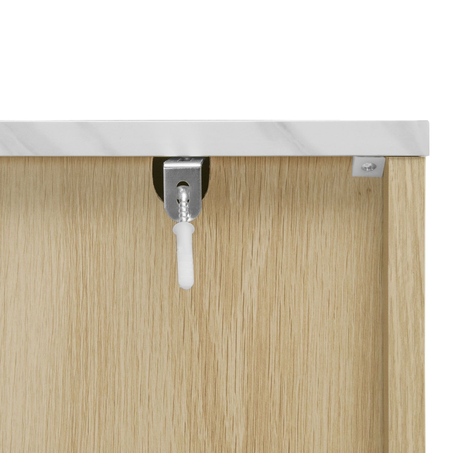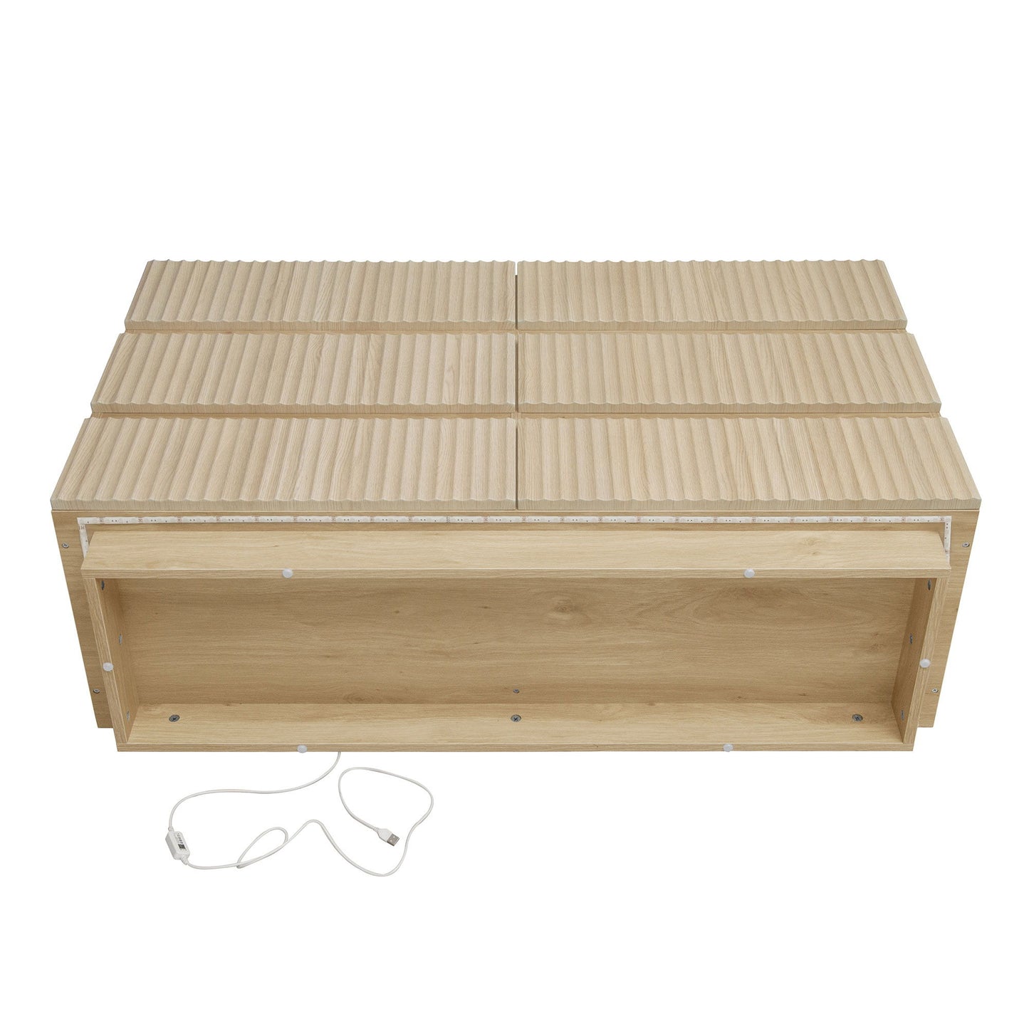 - Elegant Fluted Design: Features a unique wave-like fluted finish that reflects light beautifully, creating dynamic visual effects and enhancing spatial texture. The natural wood tone paired with a white marble-patterned top adds sophisticated charm.