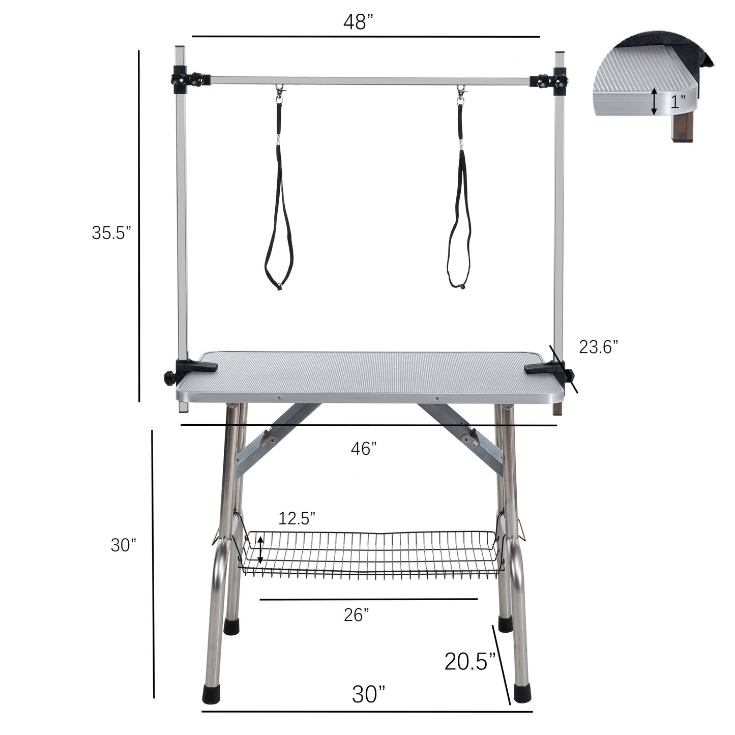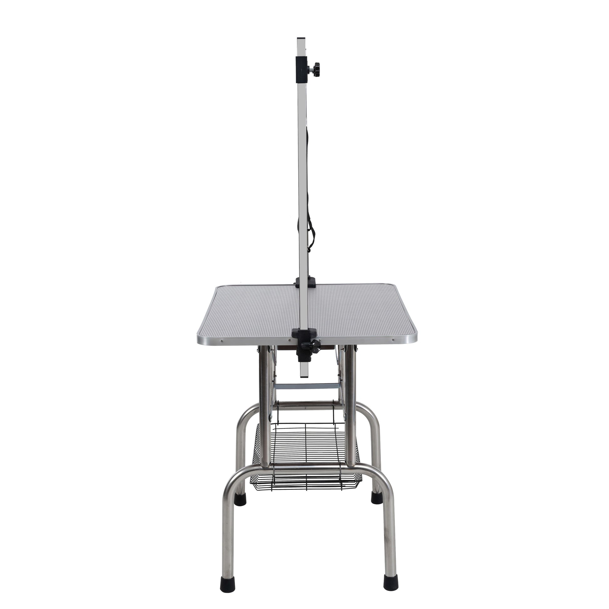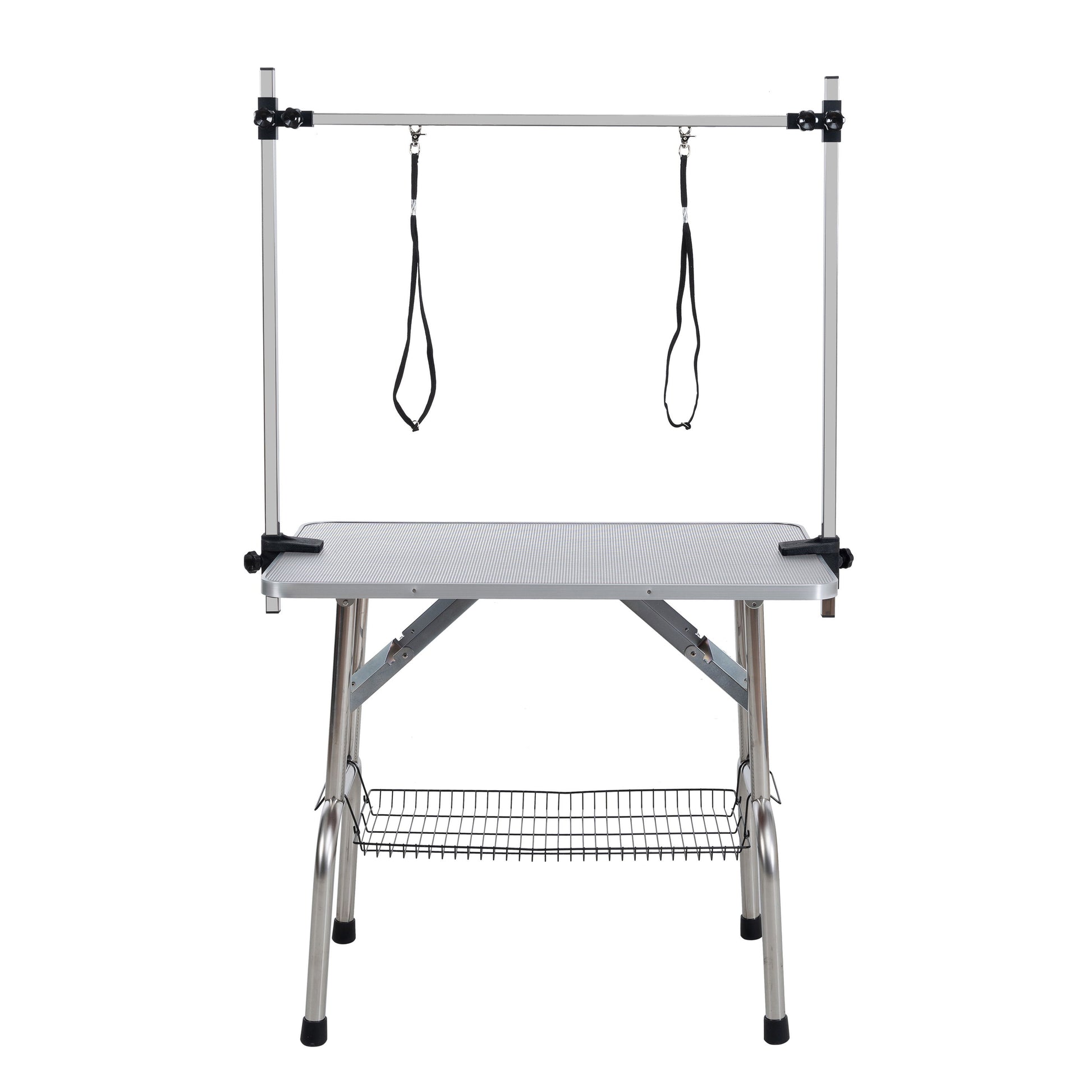 Folding Dog Pet Grooming Table Stainless Steel Frame Rubber Mat On Board With Adjustable Arm And Clamps Pet Dog Cat Grooming Table - Silver Gray
