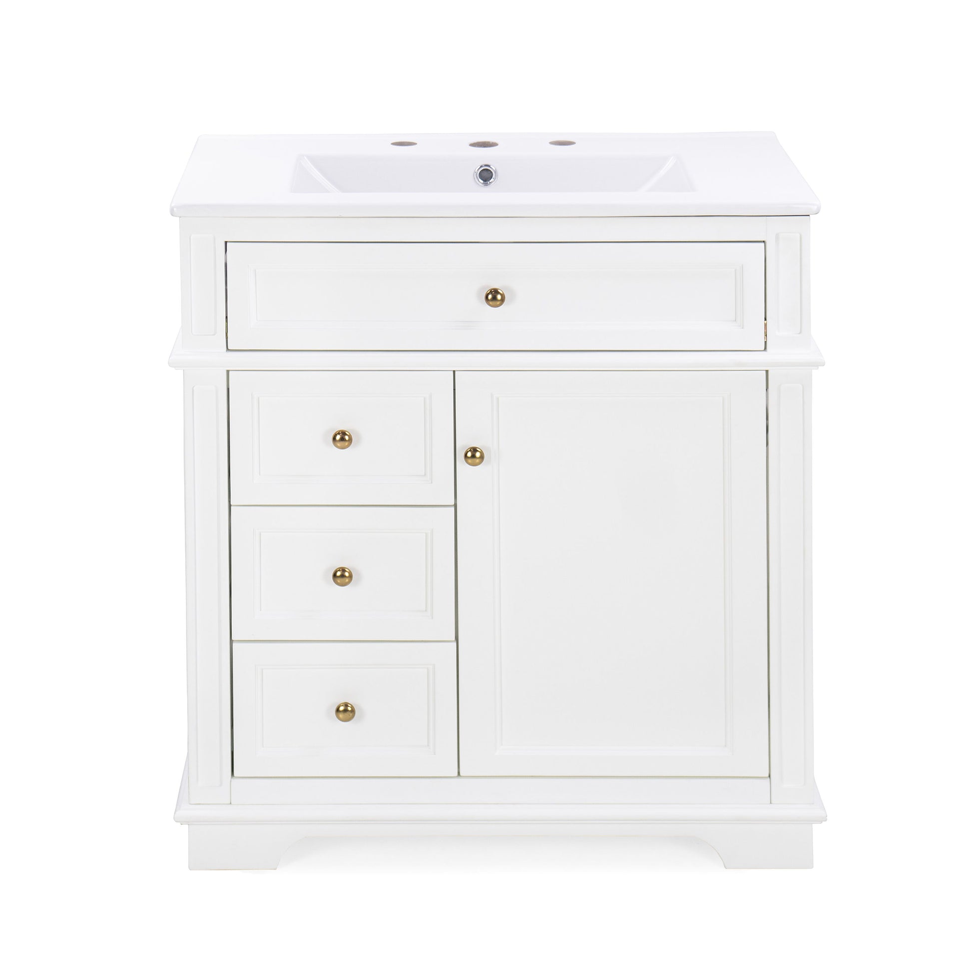 Freestanding 30" Bathroom Vanity With Sink, Soft Closing Door, Tip Out Drawer - White