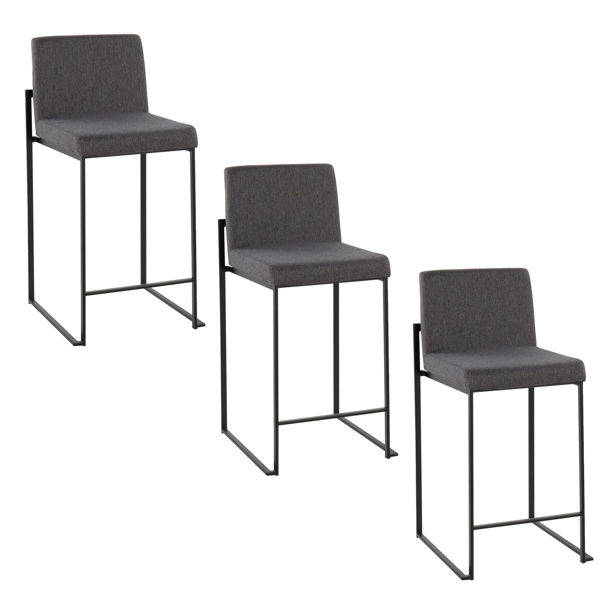 Fuji - Contemporary High Back Counter Stool (Set of 3) - Black / Charcoal
