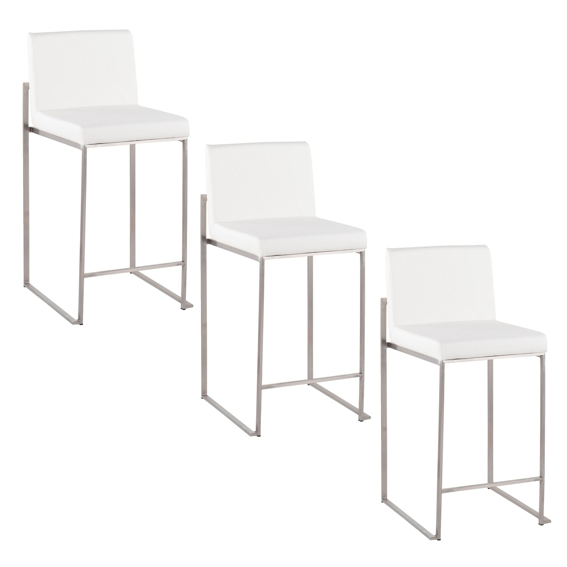 Fuji - Contemporary High Back Counter Stool (Set of 3) - White