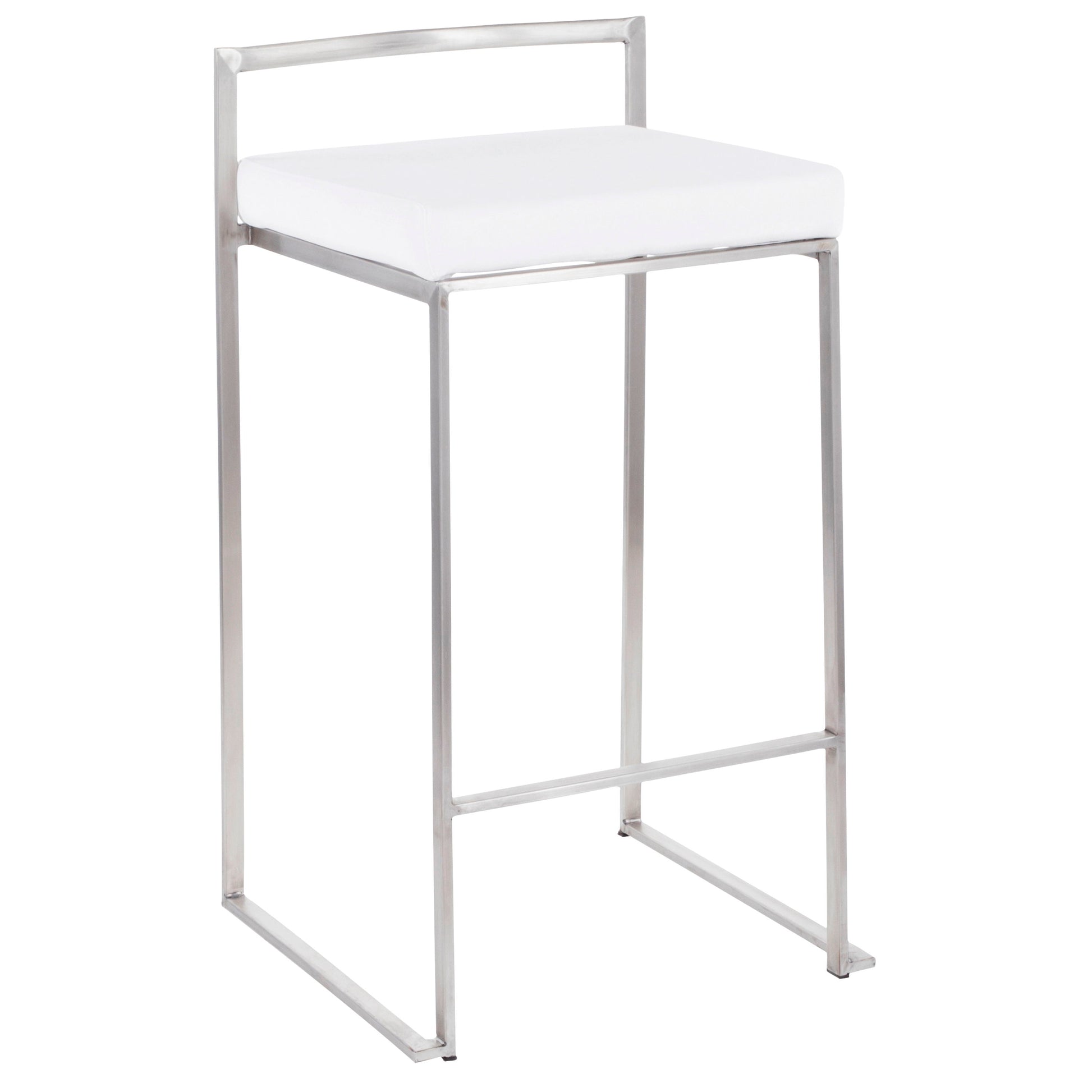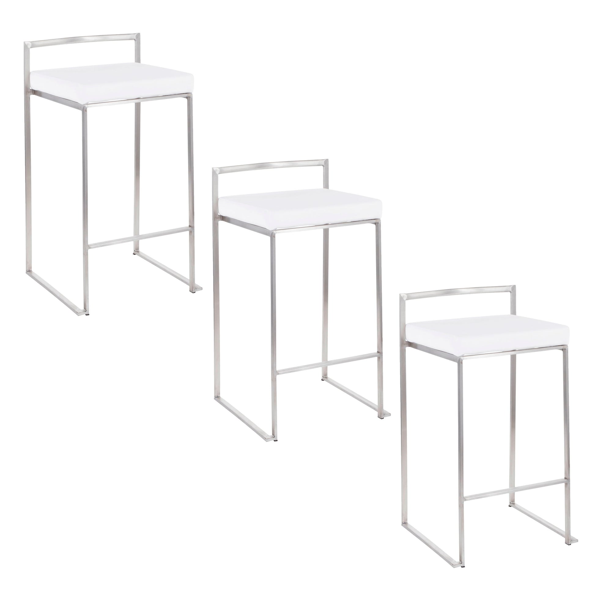 Fuji - Contemporary Stackable Counter Stool (Set of 3) - White - Velvet