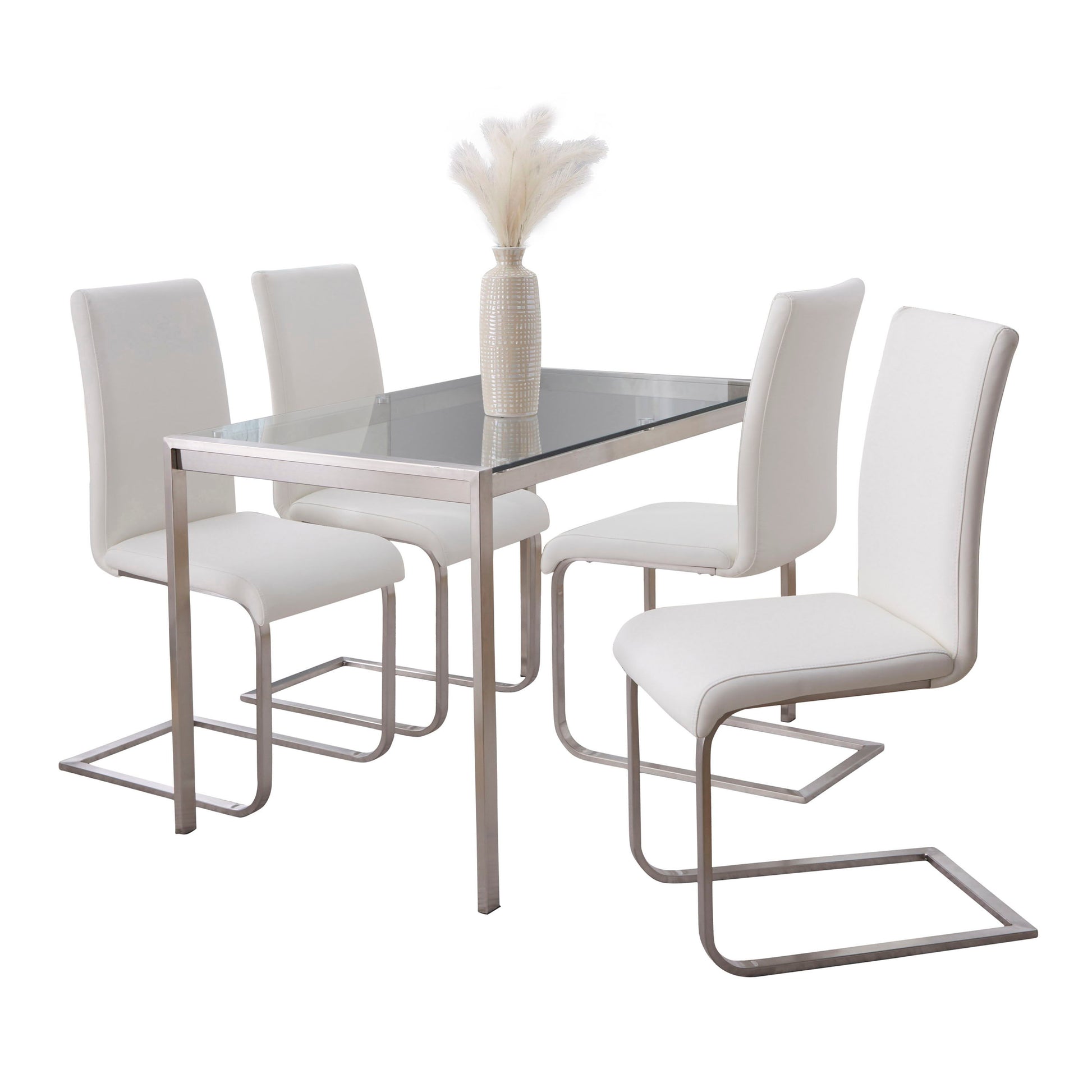 Fuji Foster - Contemporary Dining Set l, Glass 5 Piece - White