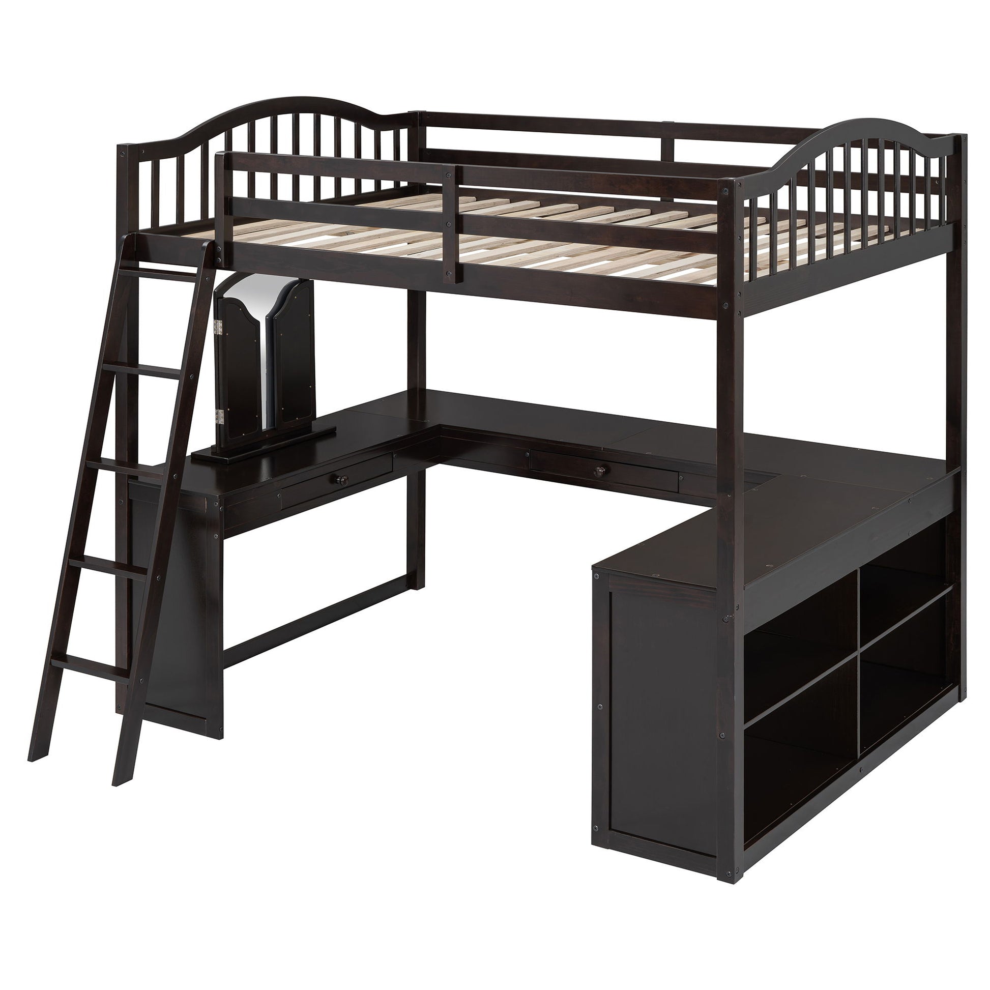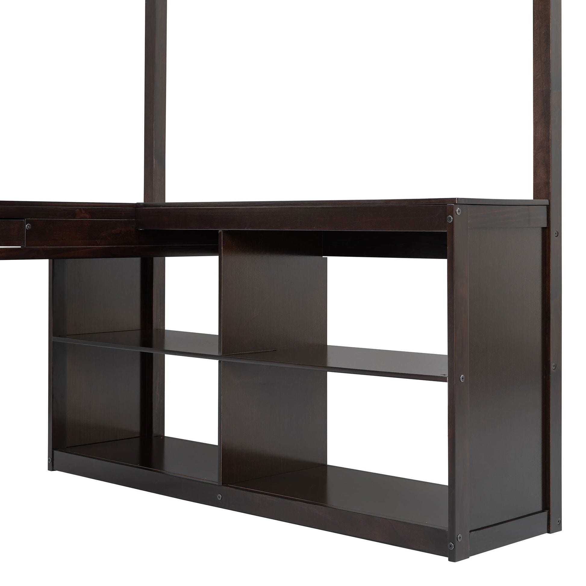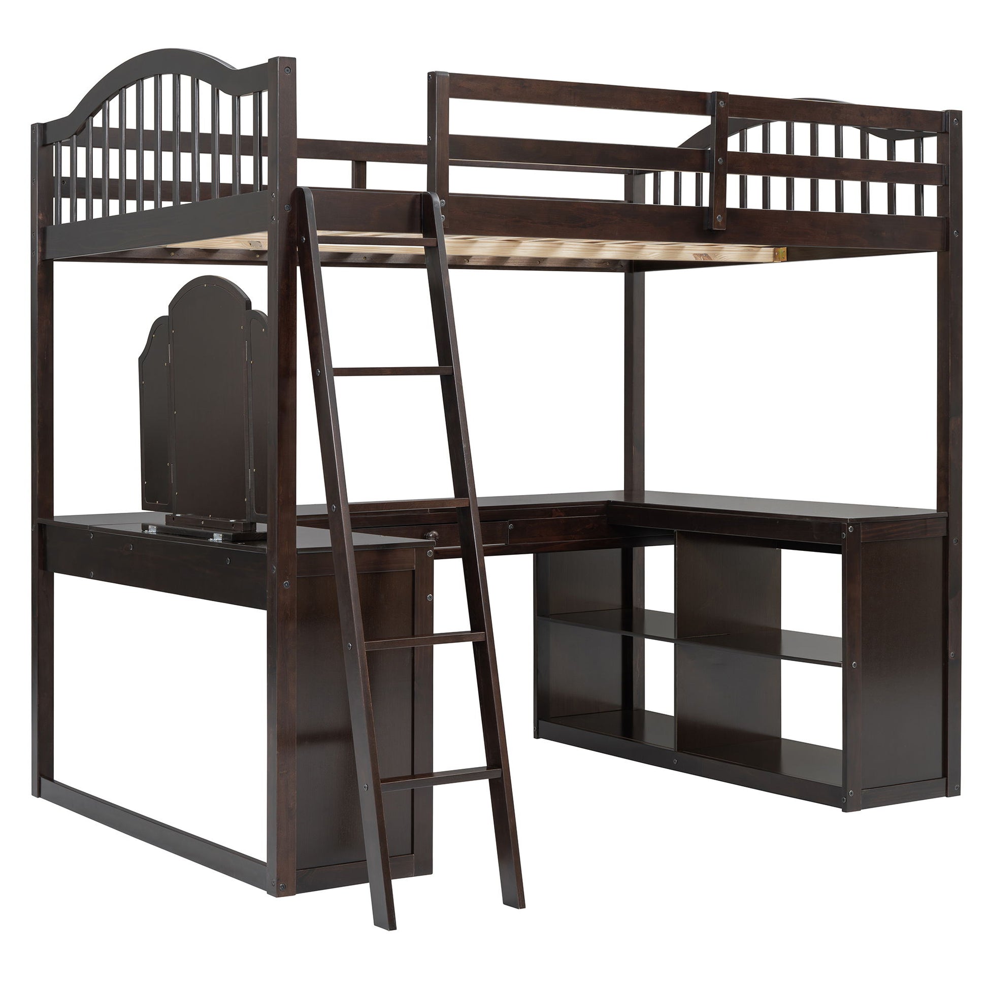 Full Loft Bed With U Shaped Desk, Storage Compartments And Tri Fold Mirror - Espresso