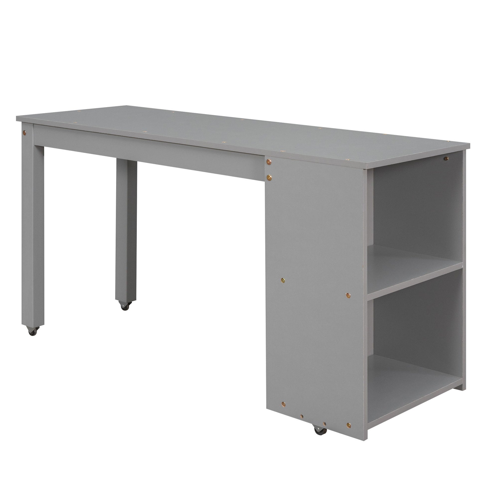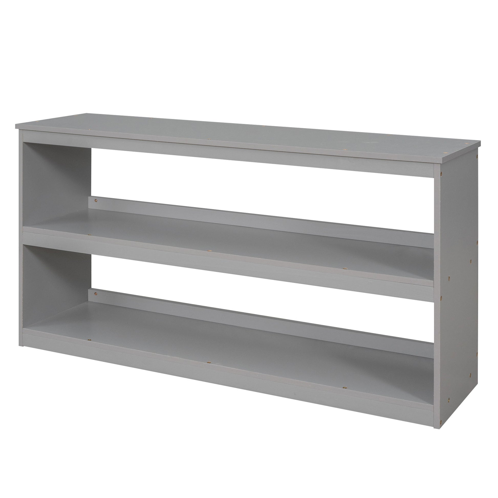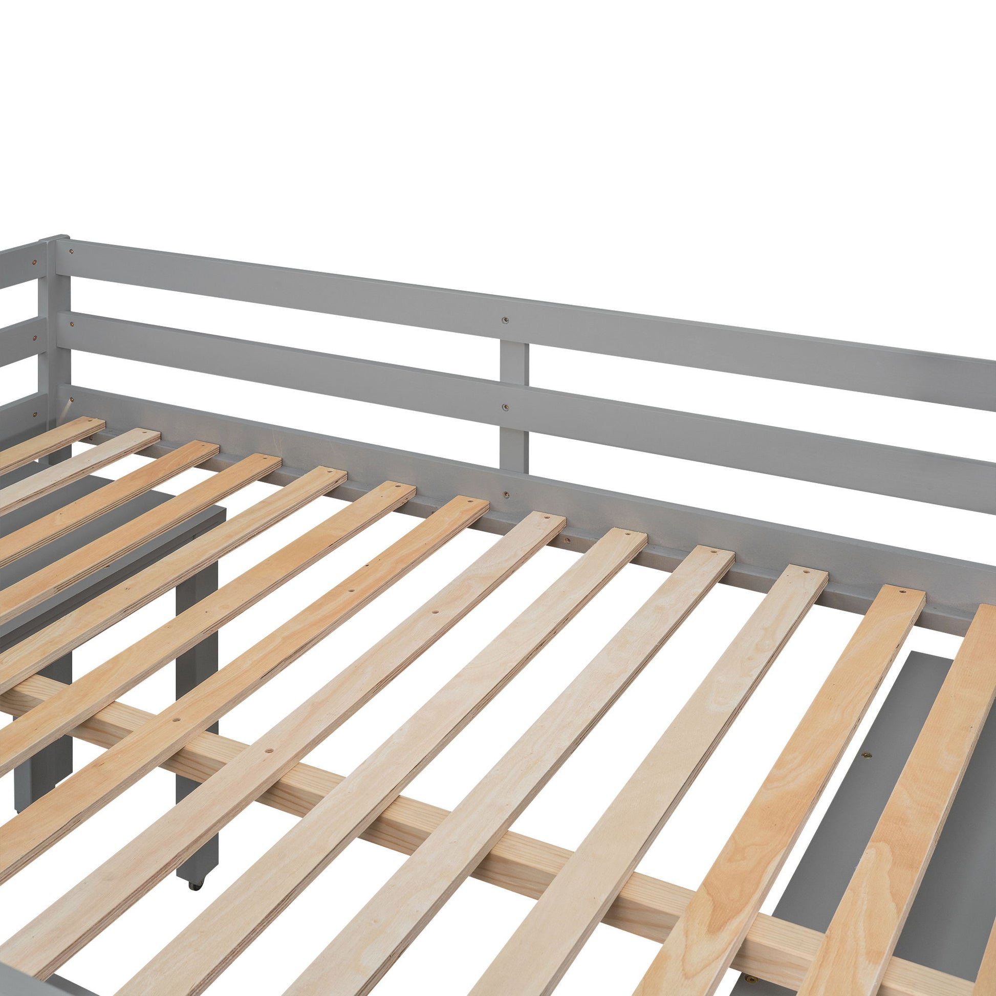 Full Loft Low Study Bed With Cabinet, Shelves And Rolling Portable Desk, Multiple Functions- Gray