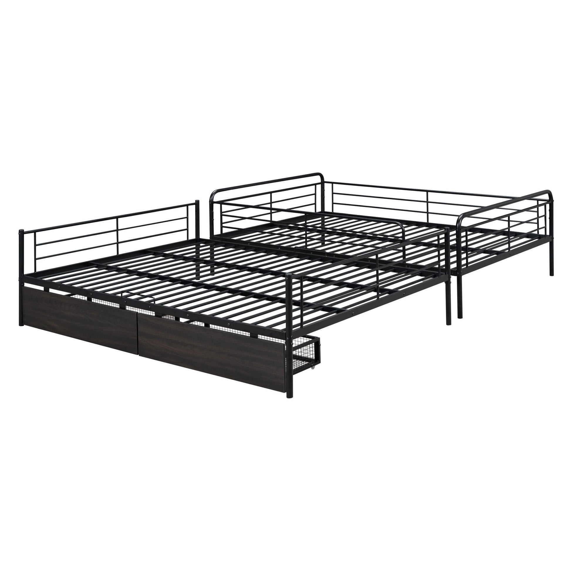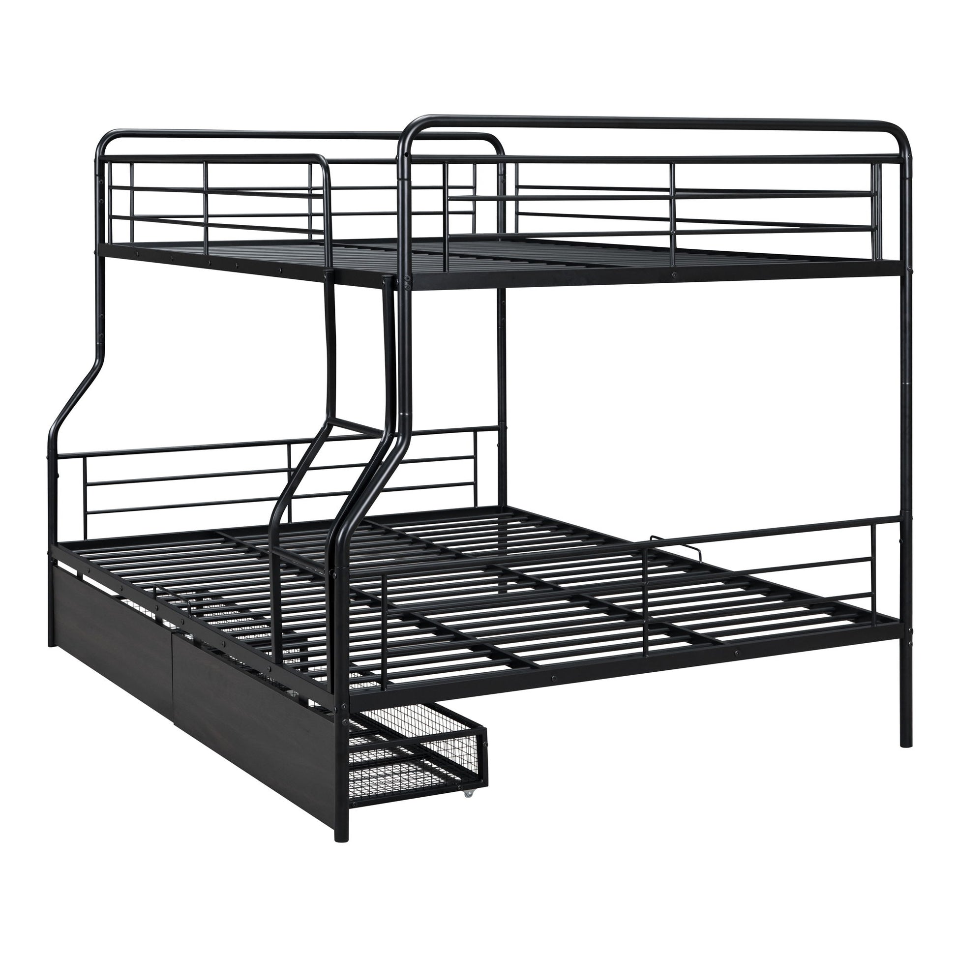 Full Long Over Queen Bunk Bed With 2 Drawers - Black