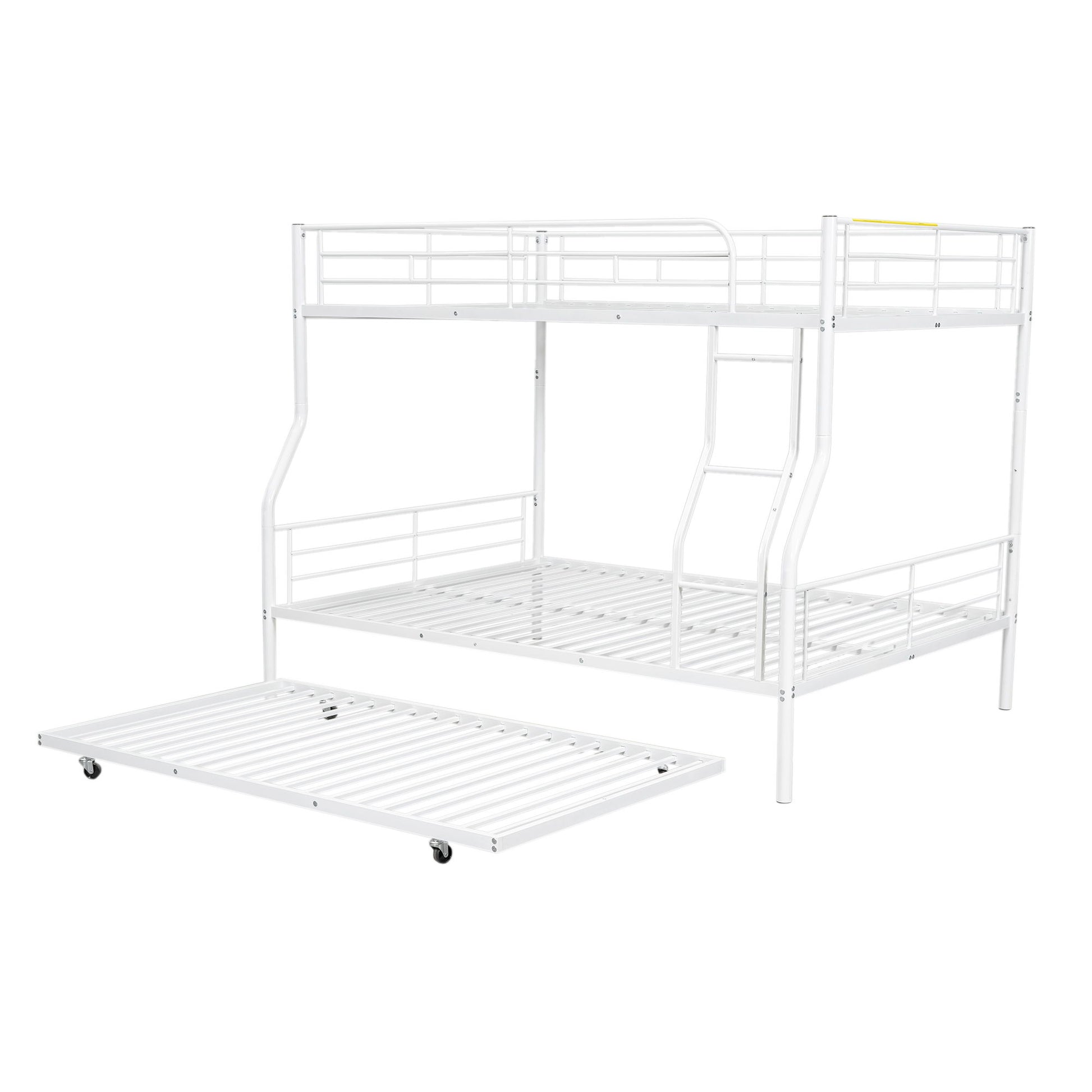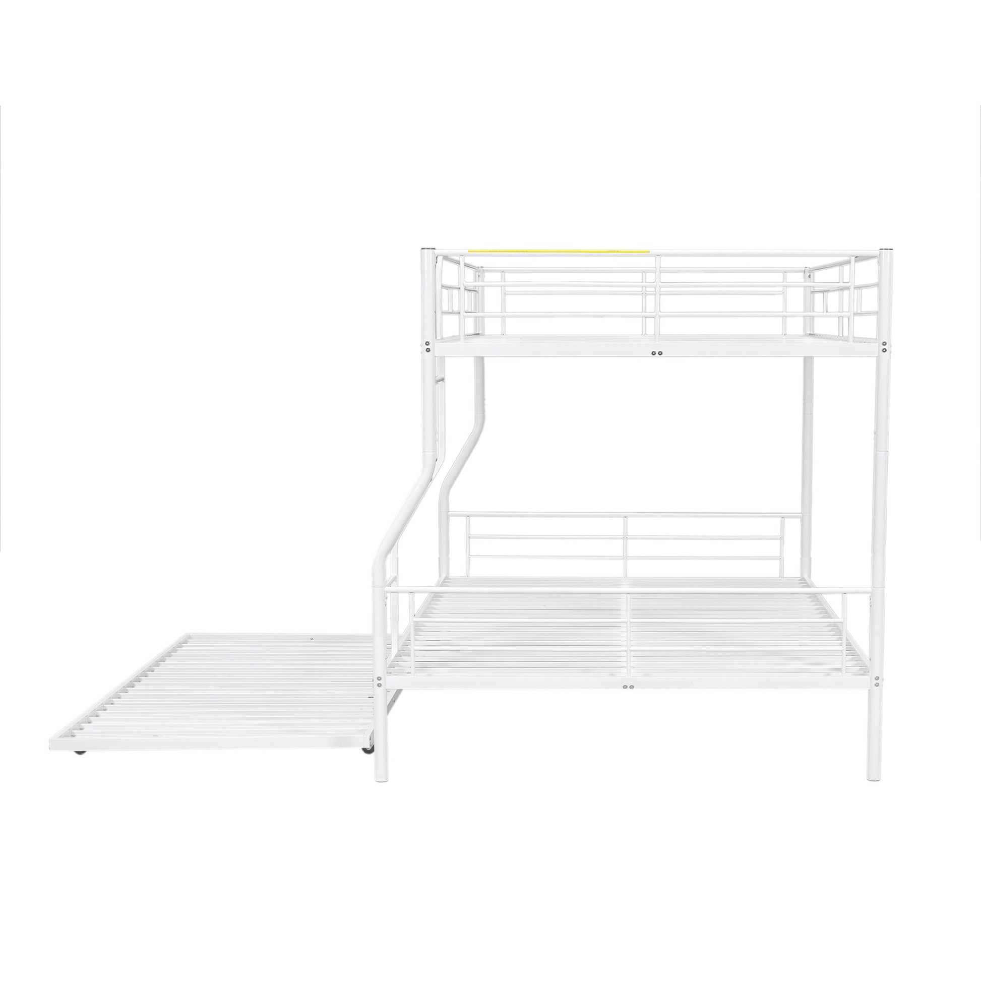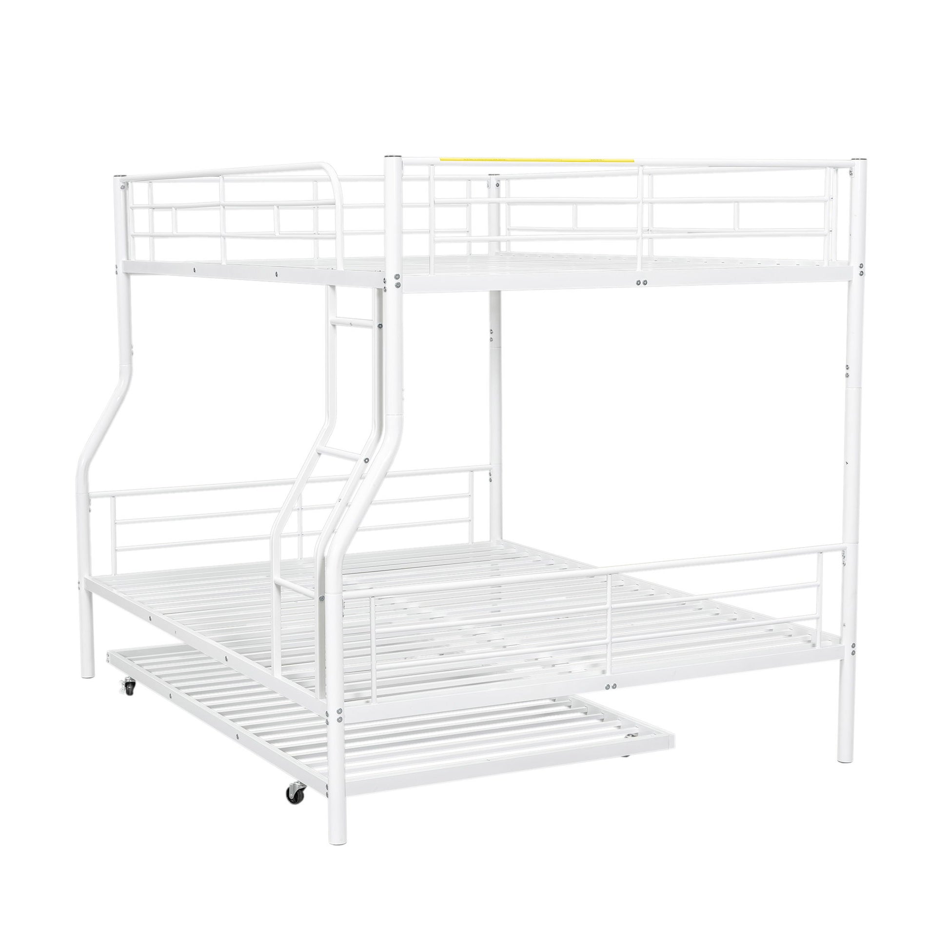 Full Long Over Queen Metal Bunk Bed With Trundle - White