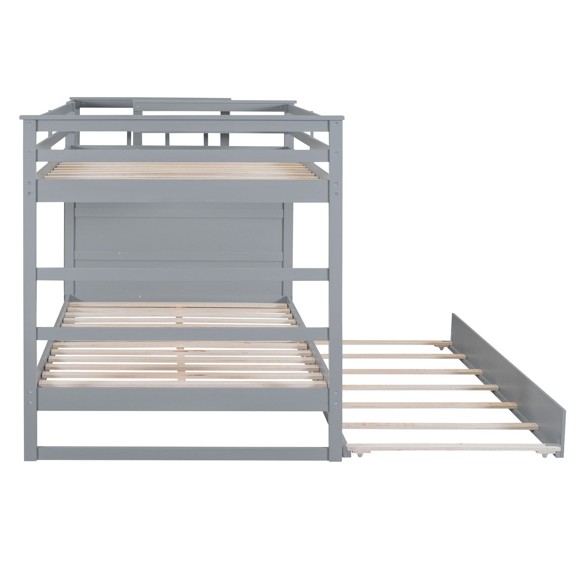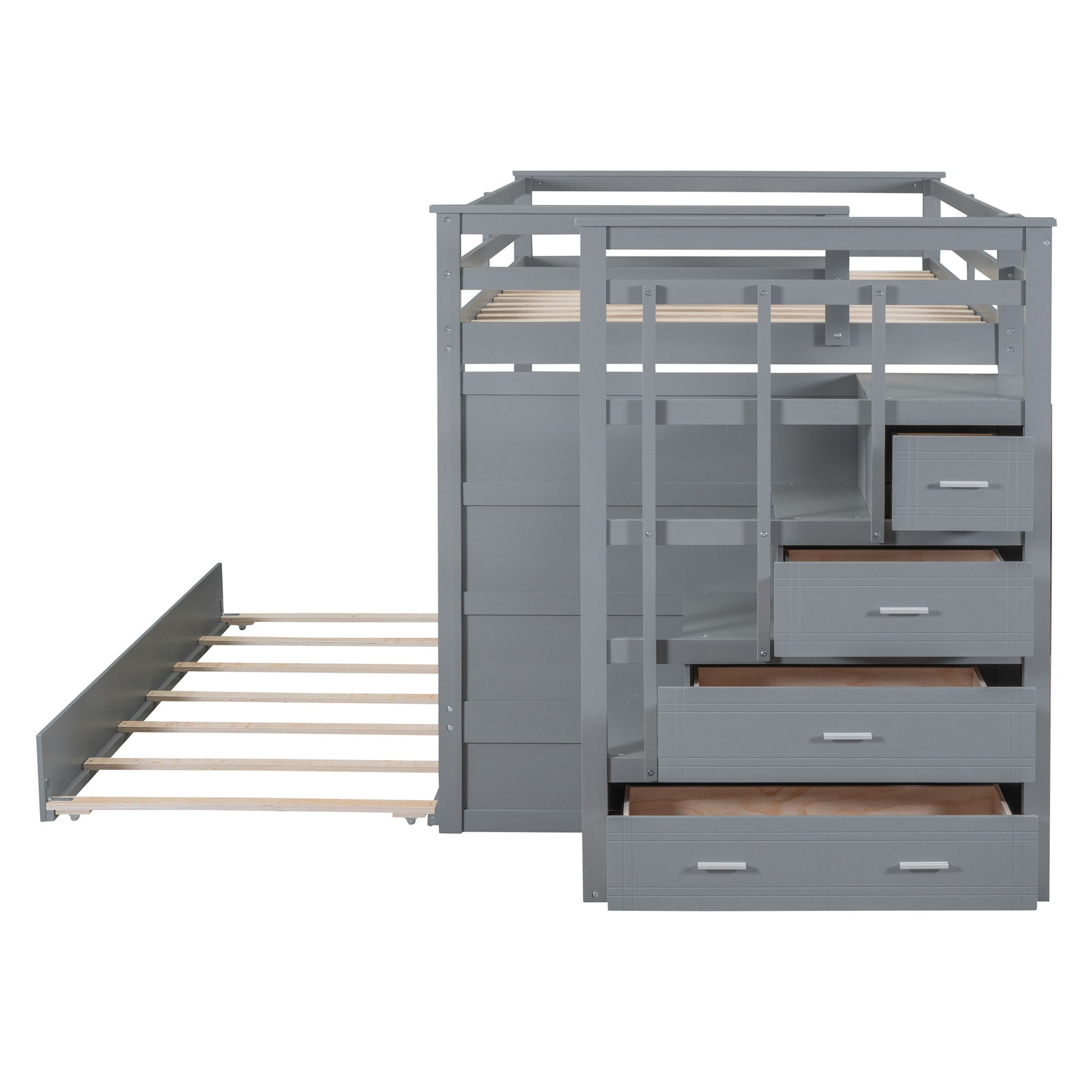 Full Over Full Bunk Bed With Twin Size Trundle And Staircase - Gray
