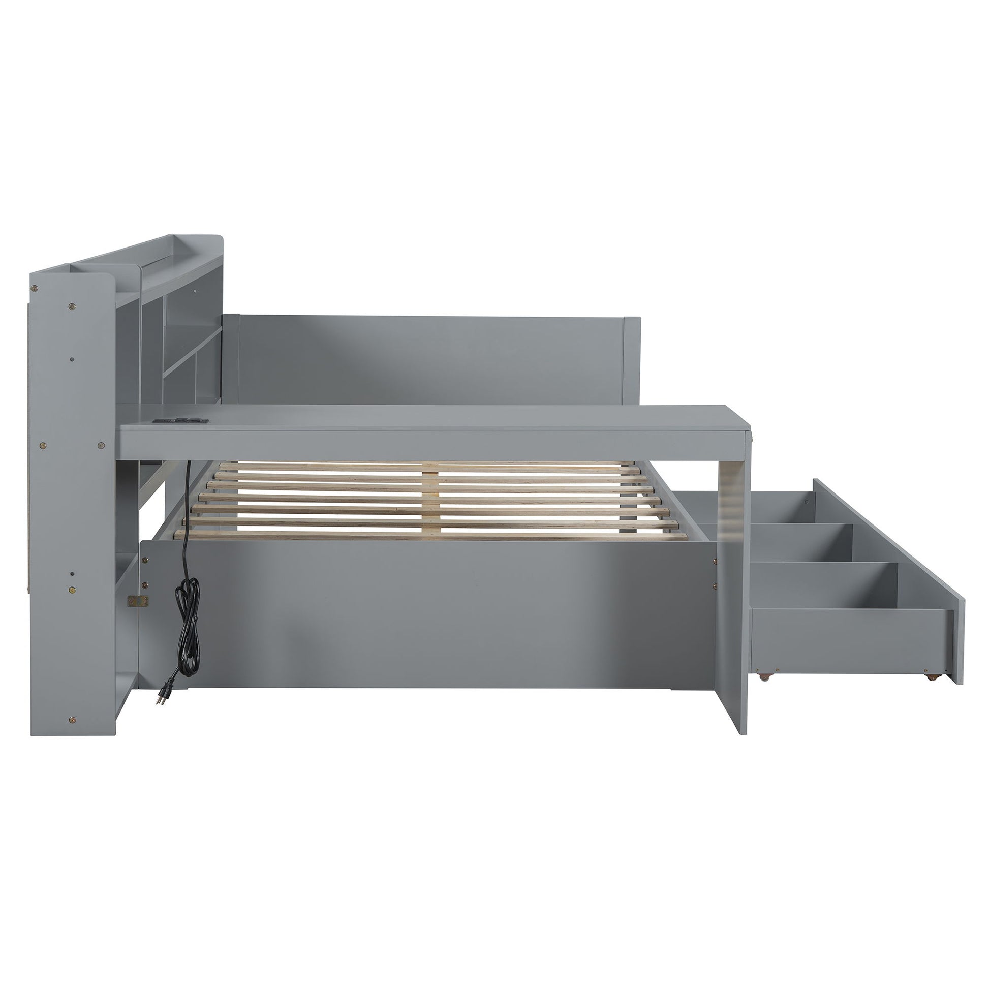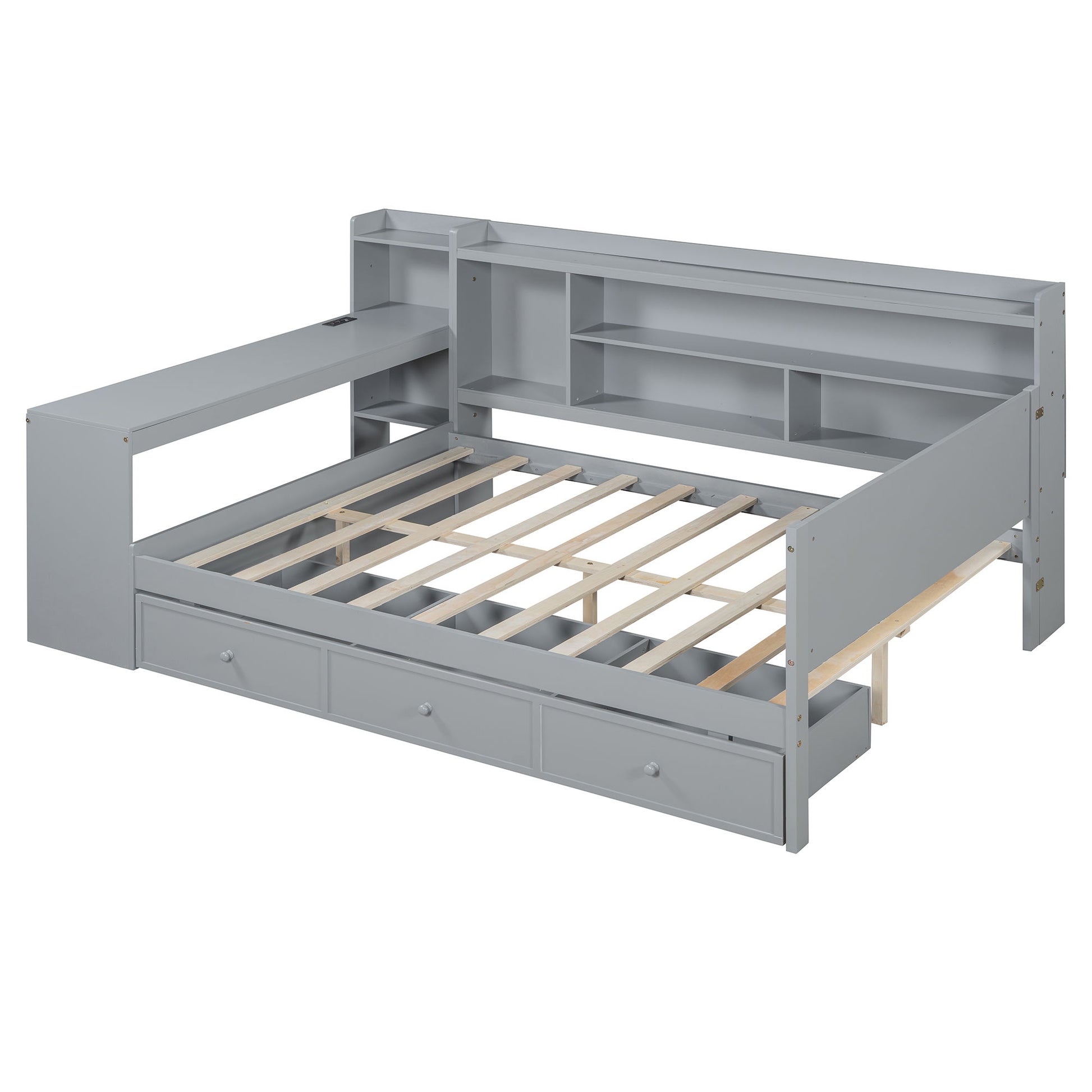 Full Size Daybed With 3 Drawers USB Ports And Desk - Gray