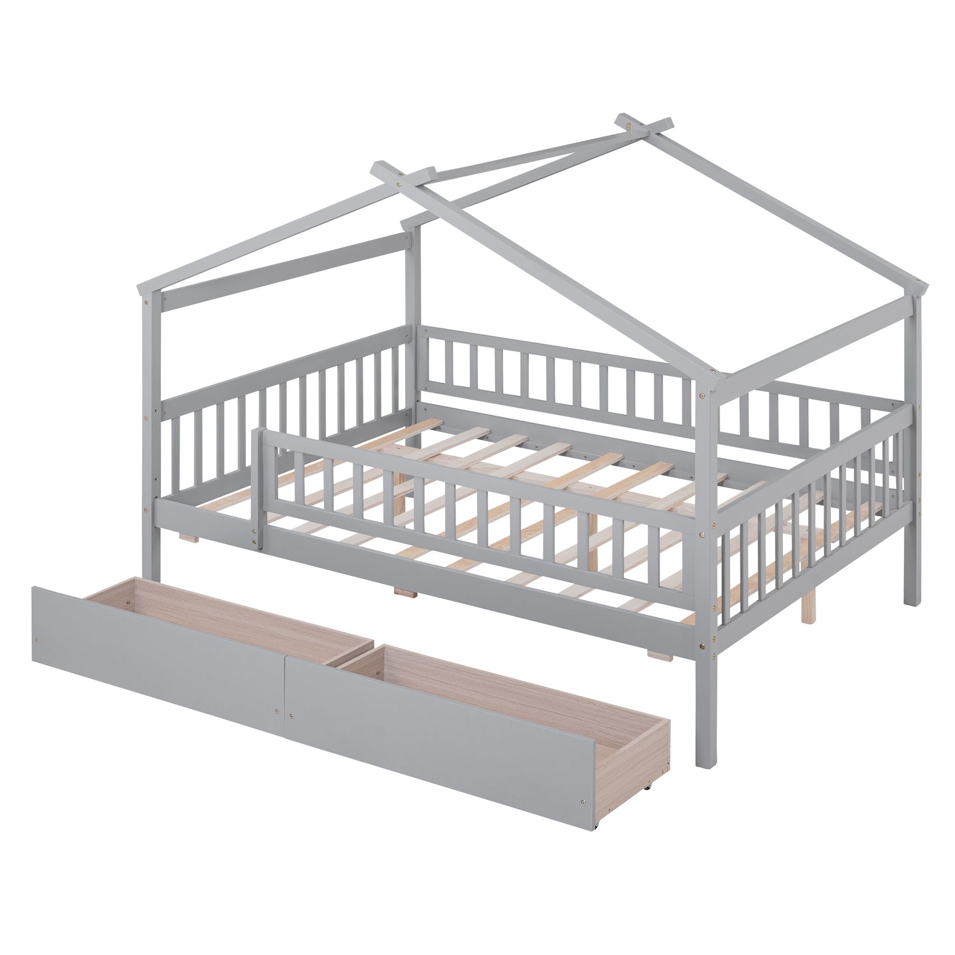 Spacious Storage: The wooden house platform bed includes two built-in drawers, providing ample storage for clothes and toys. This design maximizes space while helping your child develop good organization habits, making it a perfect space-saving solution.