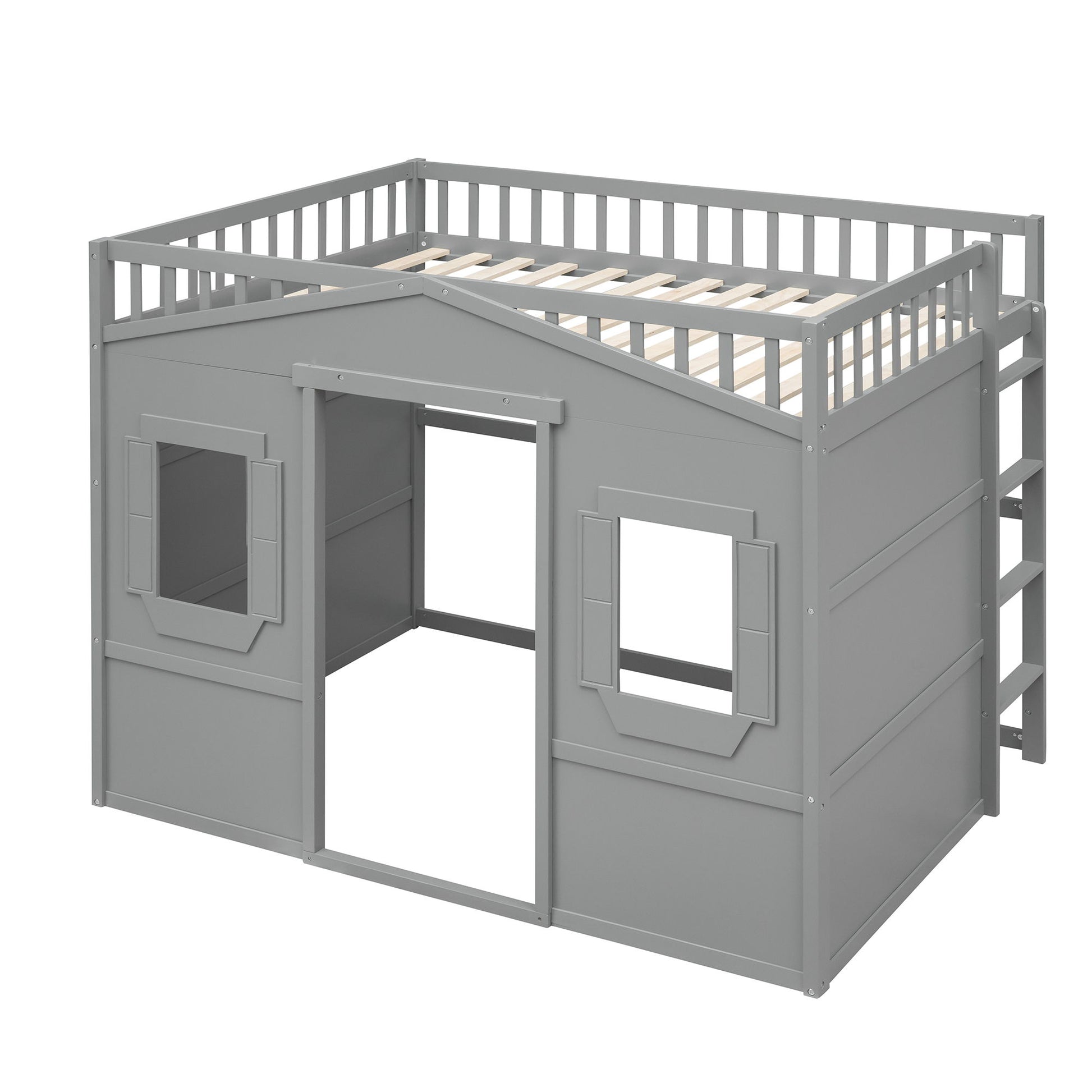 Full Size House Loft Bed With Ladder - Gray