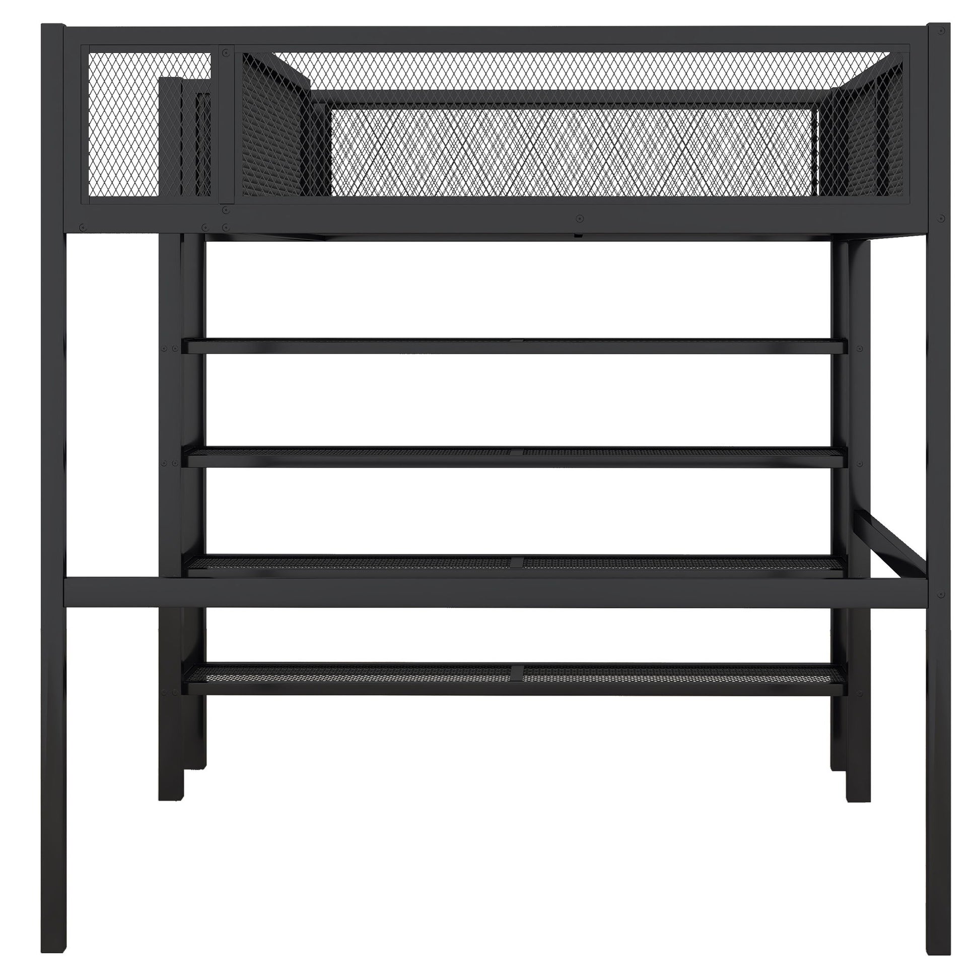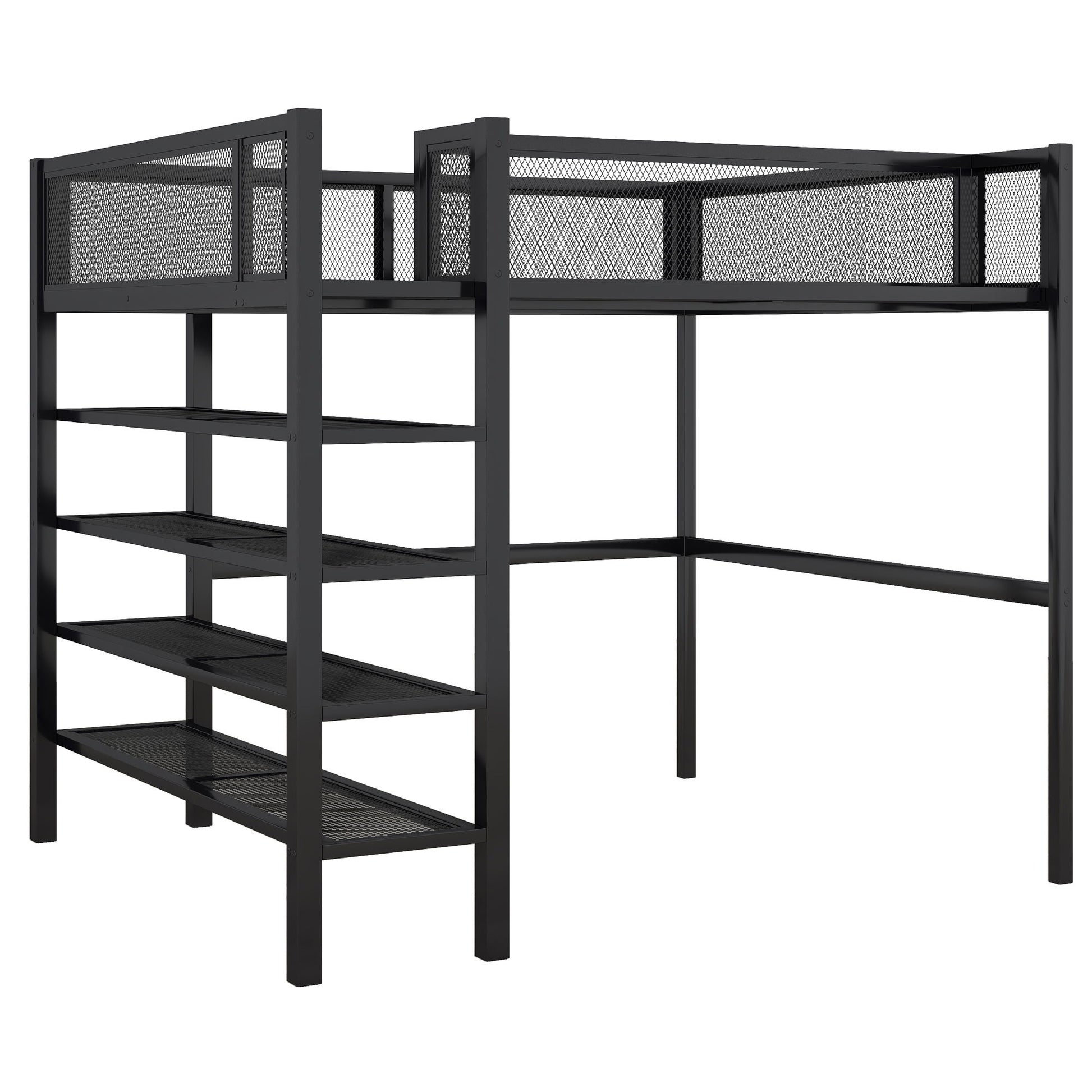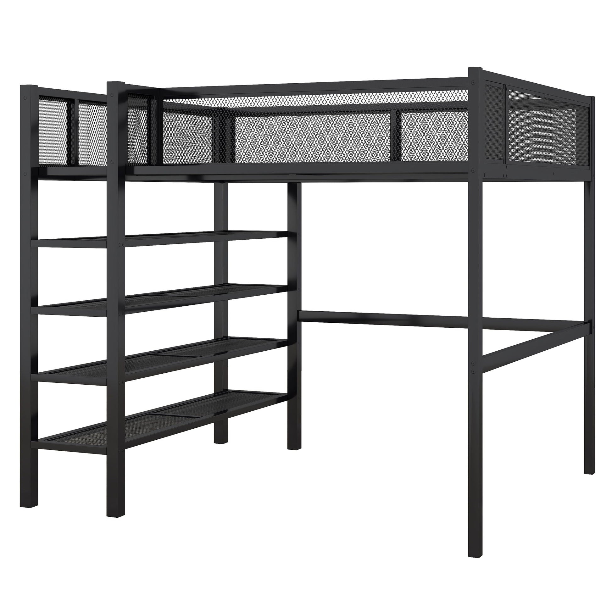 Full Size Loft Bed With 4 Tier Shelves And Storage - Black