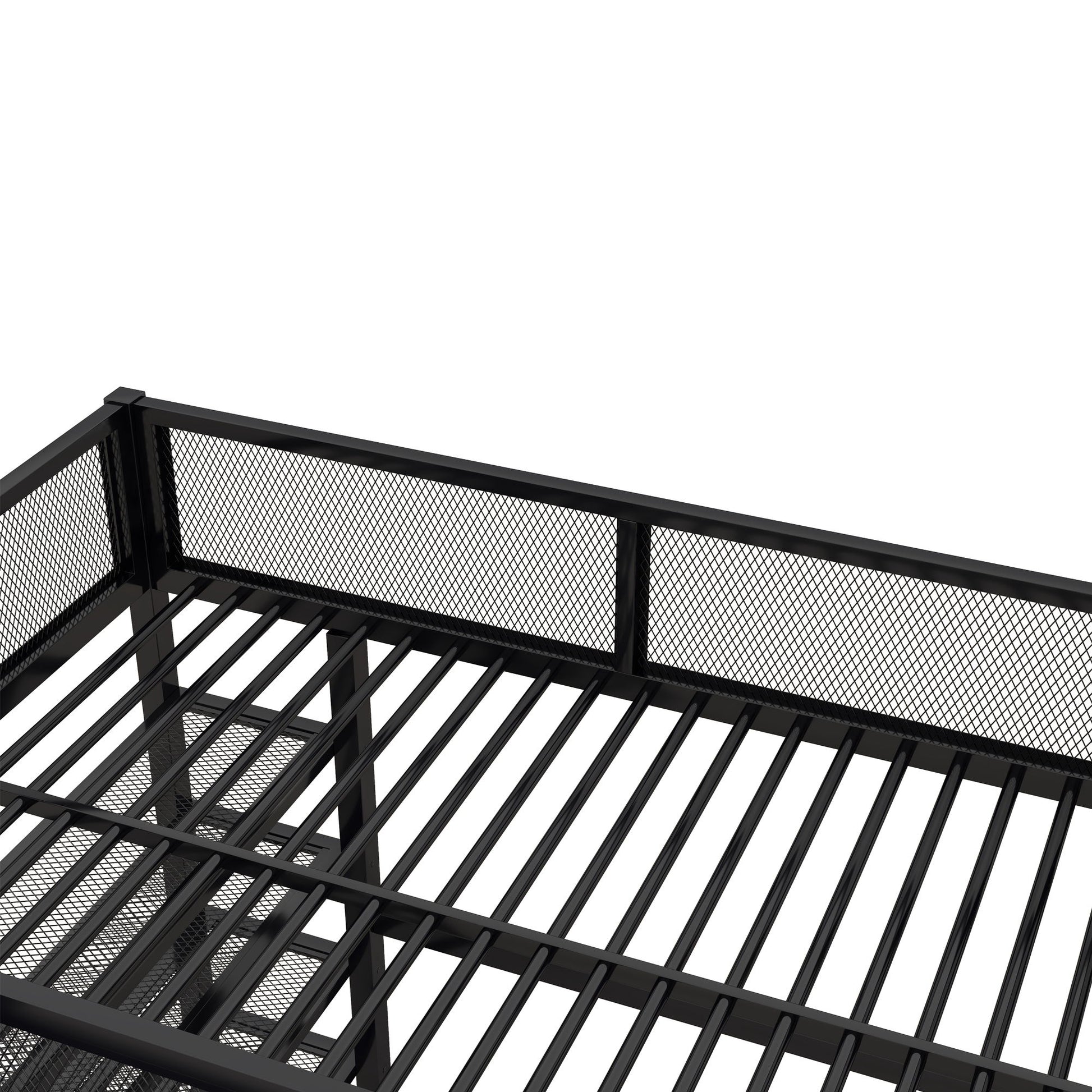 Modern Style: Crafted from metal with a clean painted finish, this bed features a sleek silhouette with a horizontal slatted headboard and footboard, matched with a guardrail. It blends seamlessly with any room decor. The raised base creates a cozy loft space for storage or play.