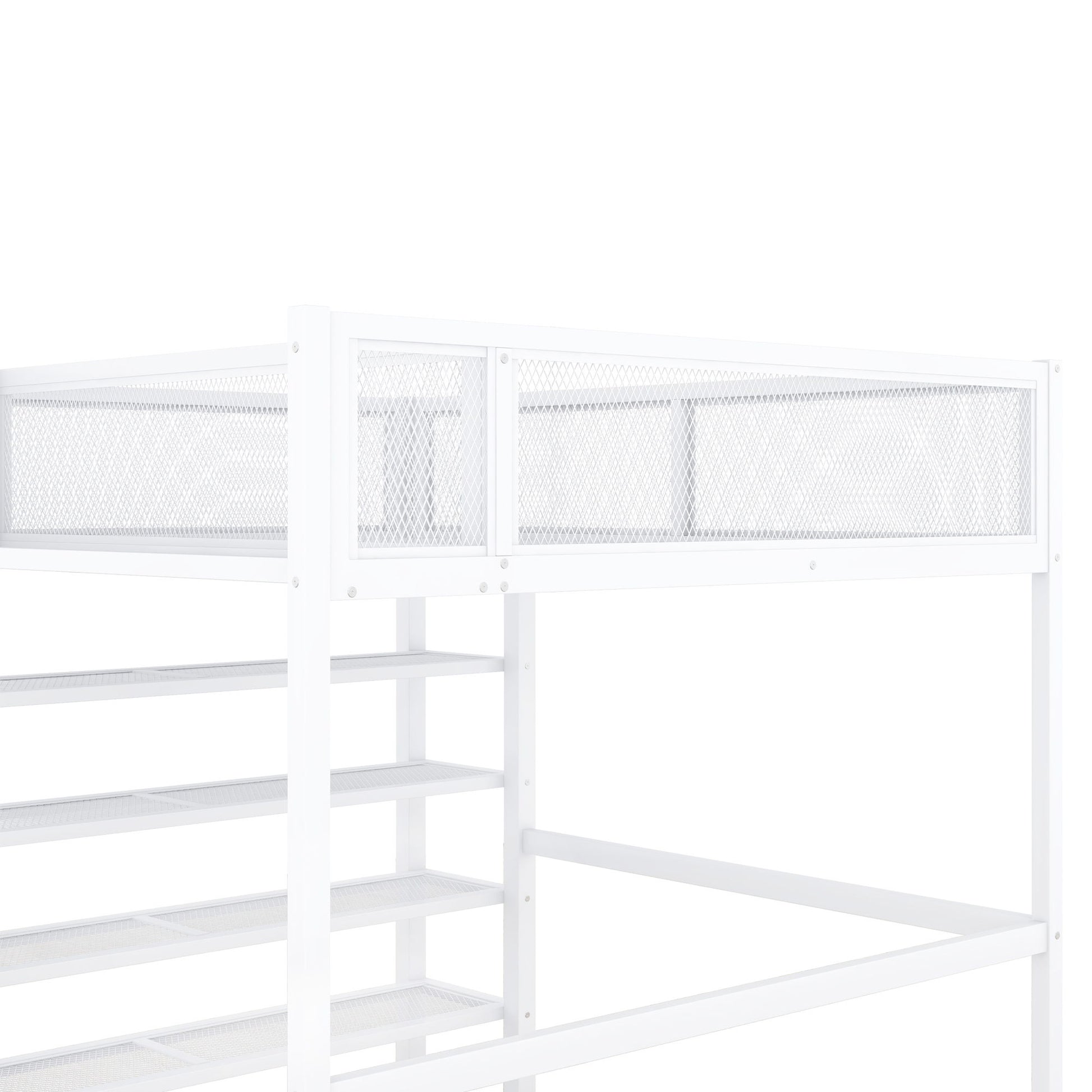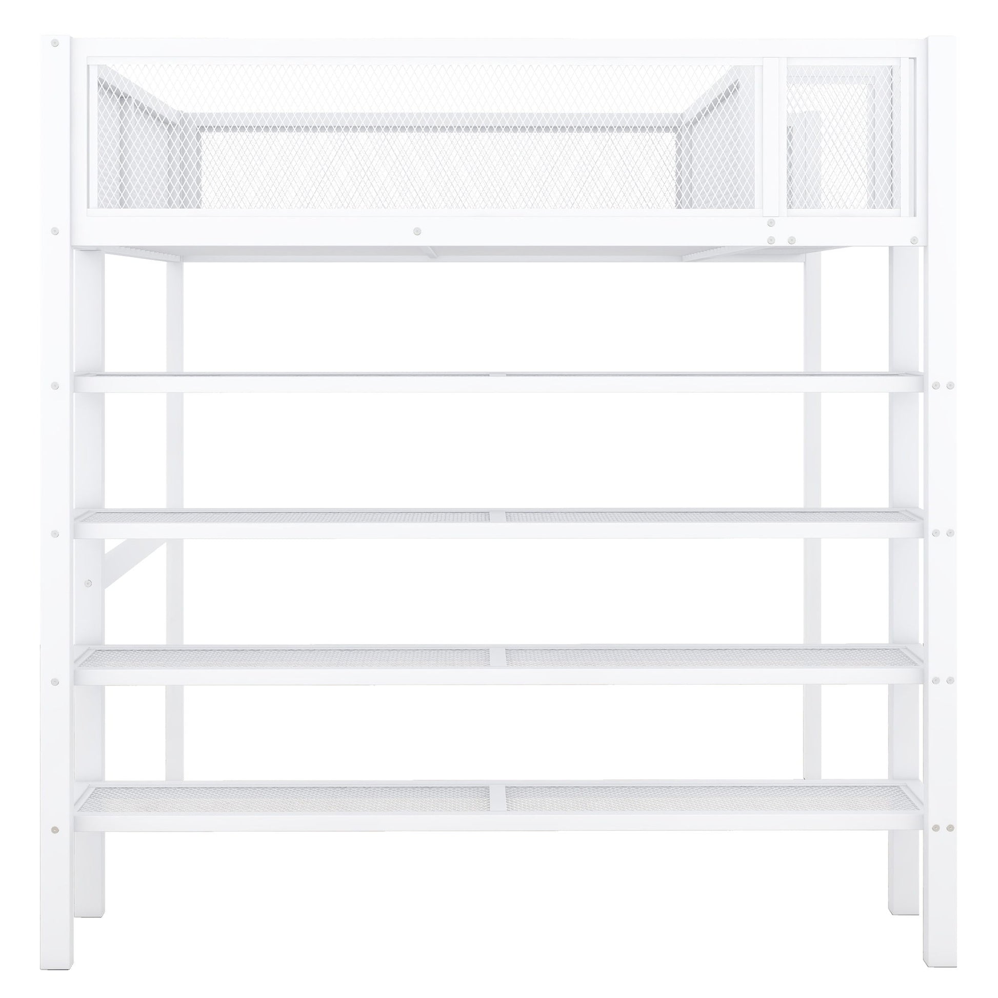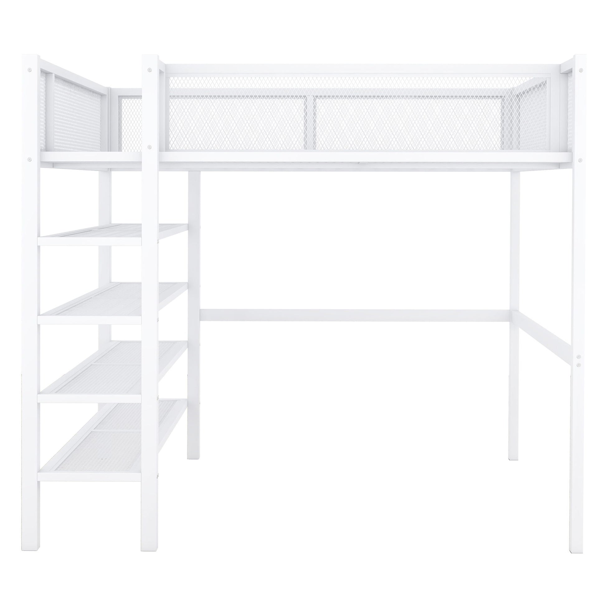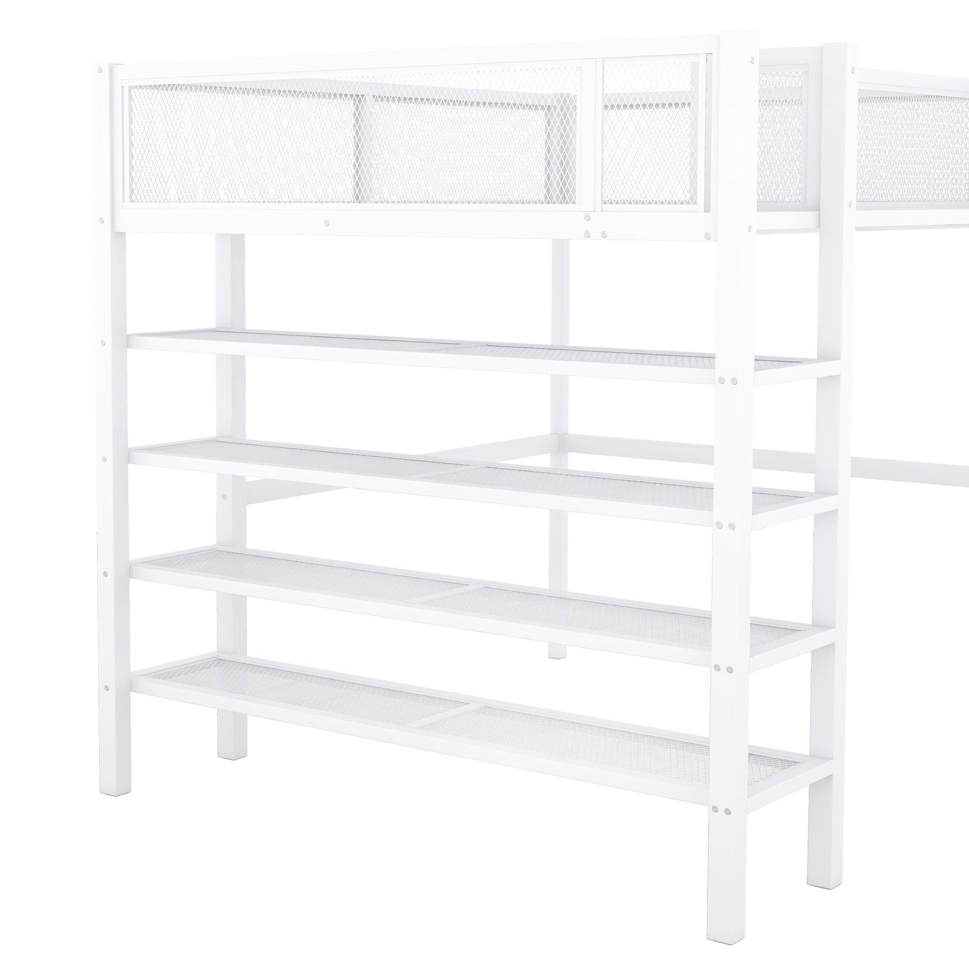Full Size Loft Bed With 4 Tier Shelves And Storage - White