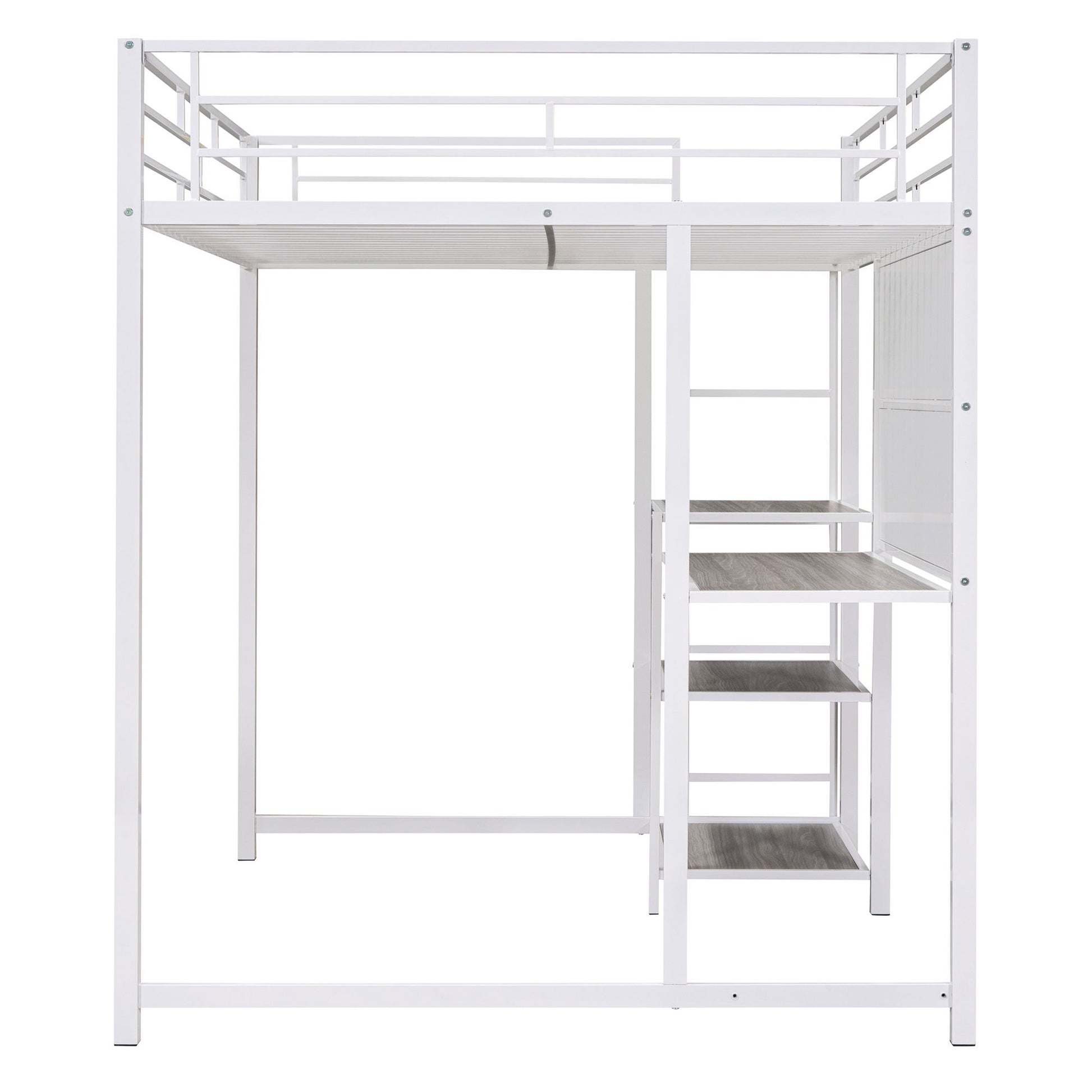 Full Size Loft Bed With Desk And Whiteboard, Loft Bed With 3 Shelves And Ladder - White