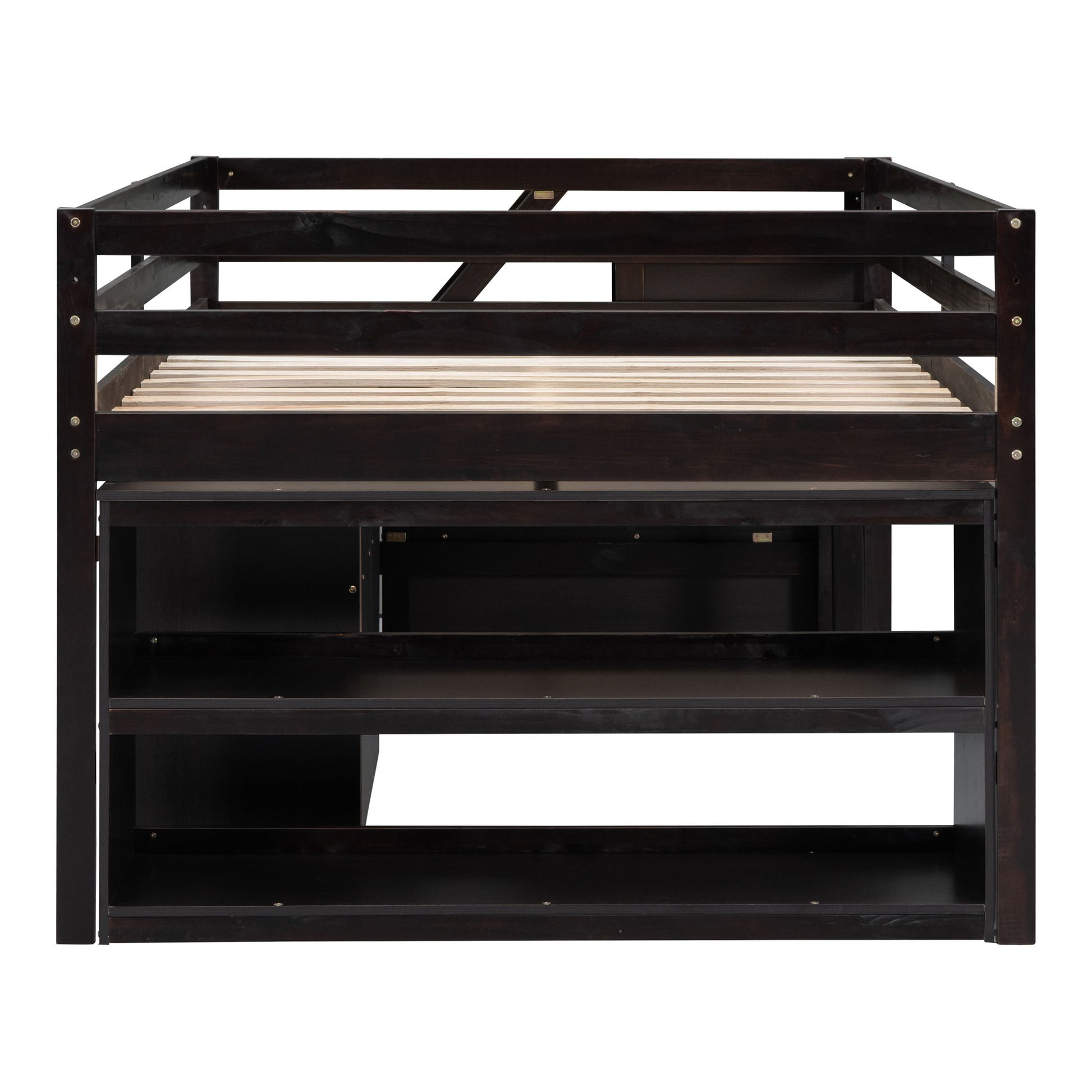 Full Size Loft Bed With Retractable Writing Desk And 3 Drawers With Storage Stairs And Shelves - Espresso