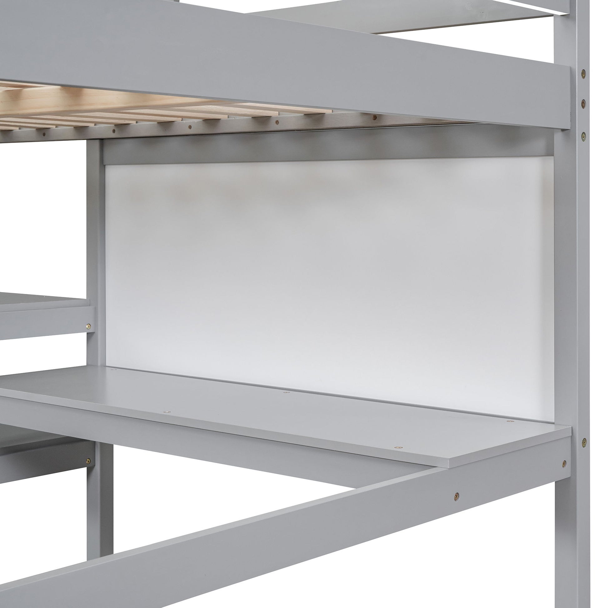 Full Size Loft Bed With Shelves, Desk And Writing Board - Gray