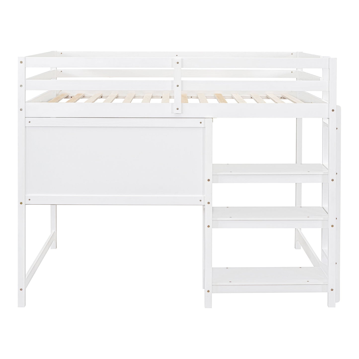 Full Size Loft Bed With Shelves, Desk And Writing Board - White