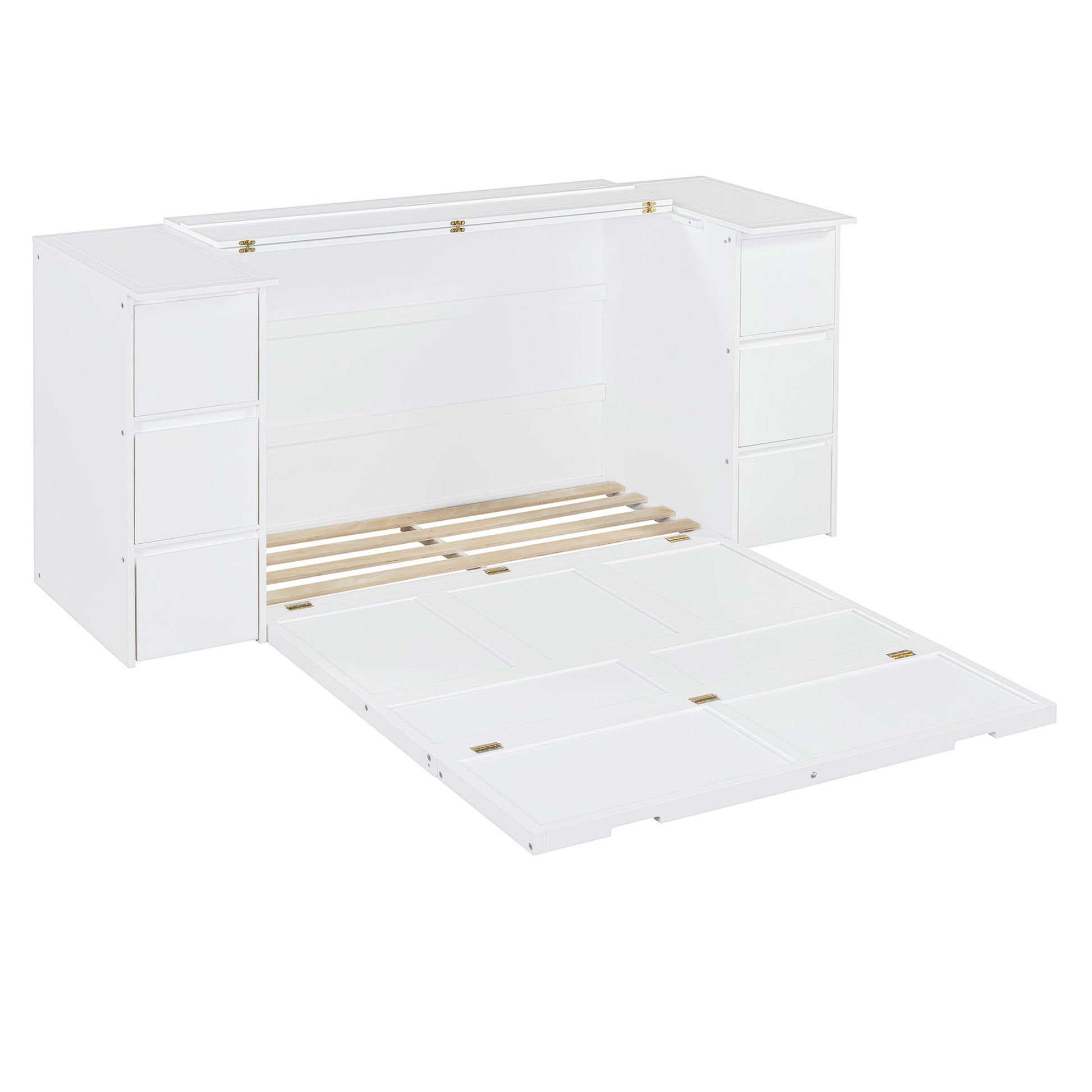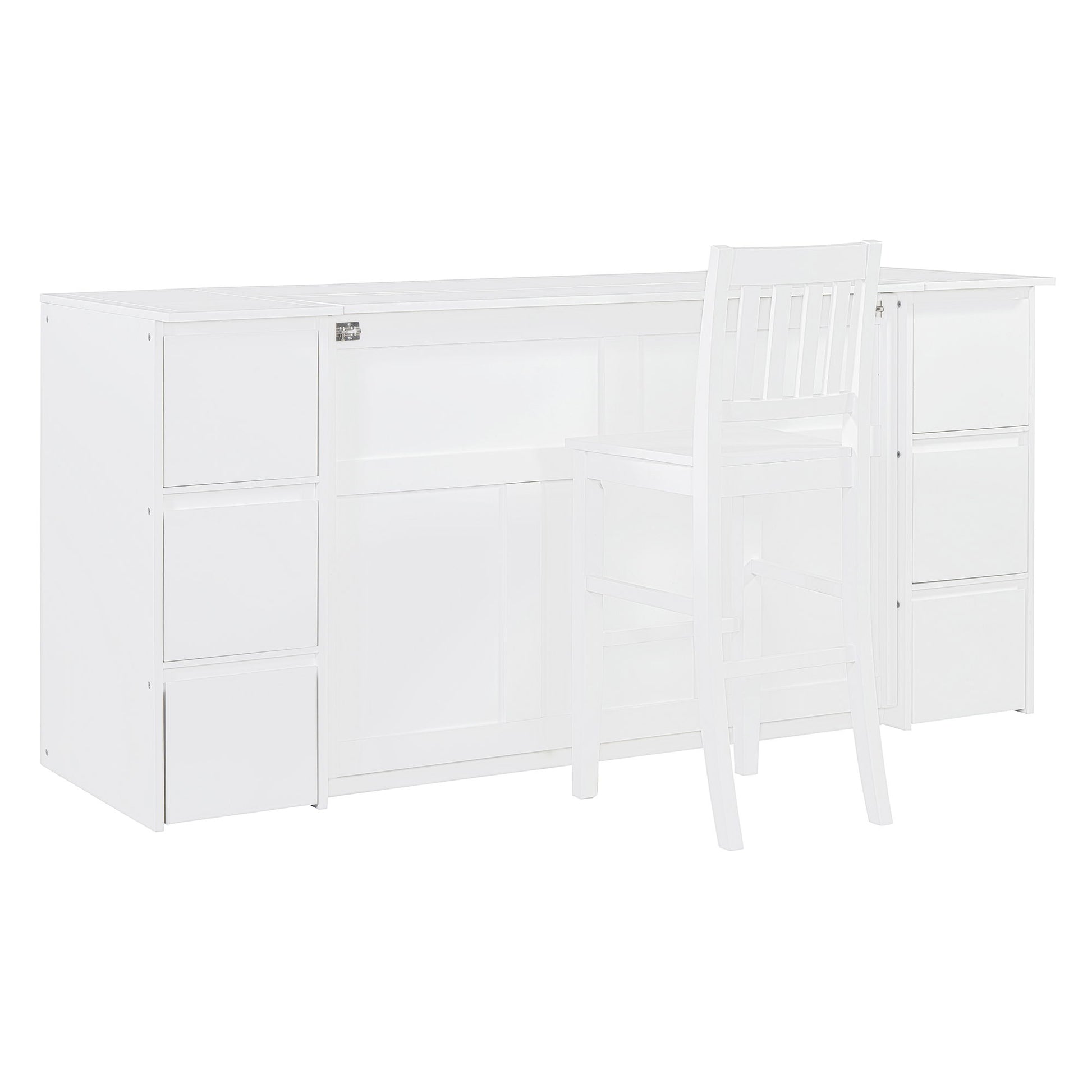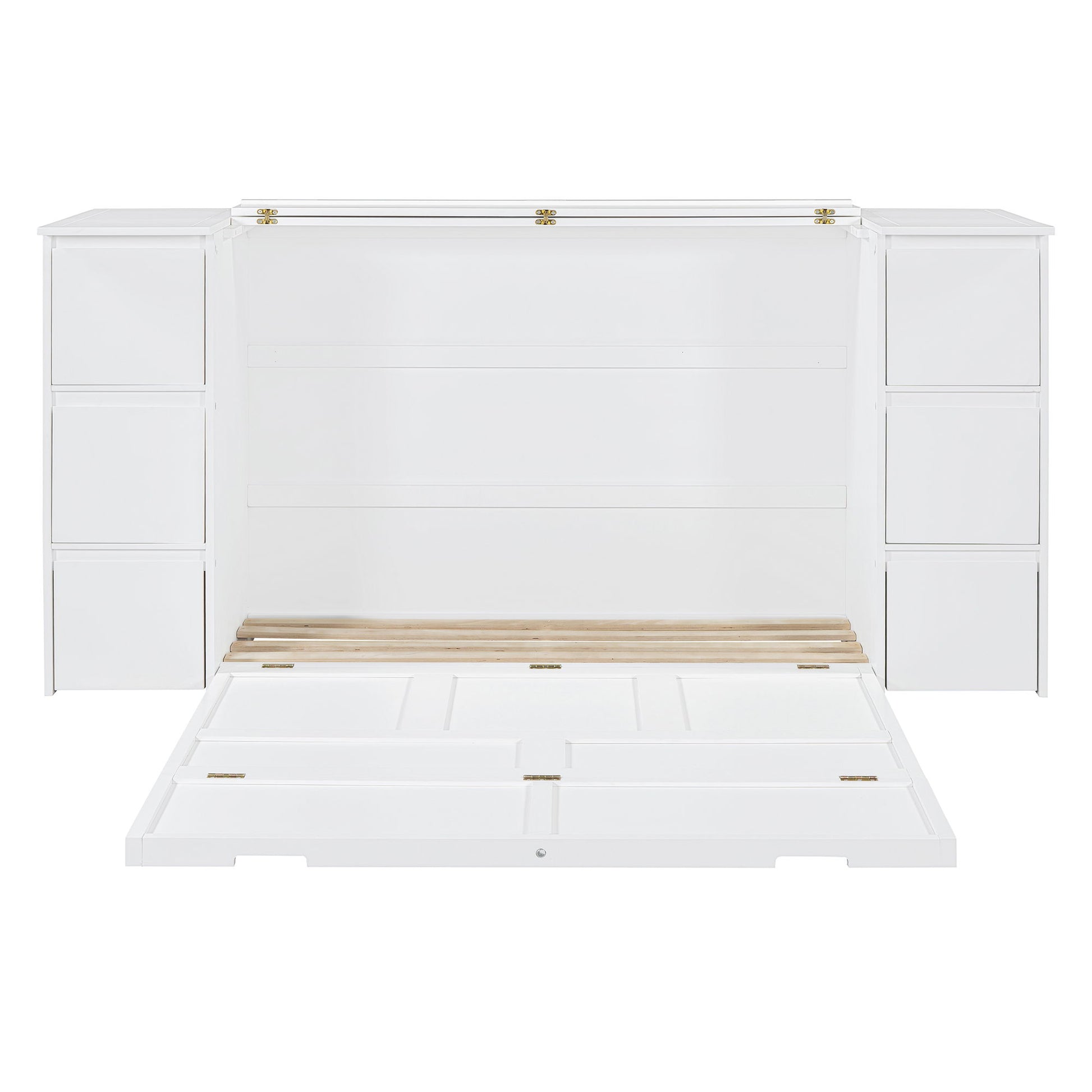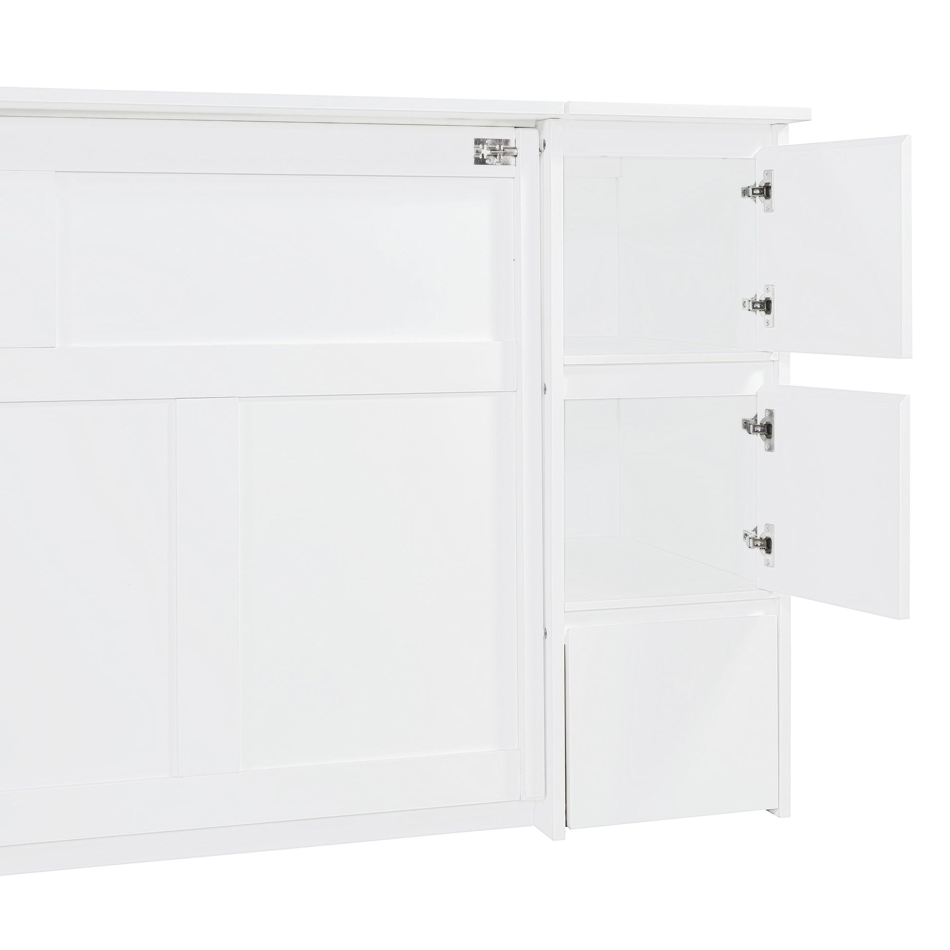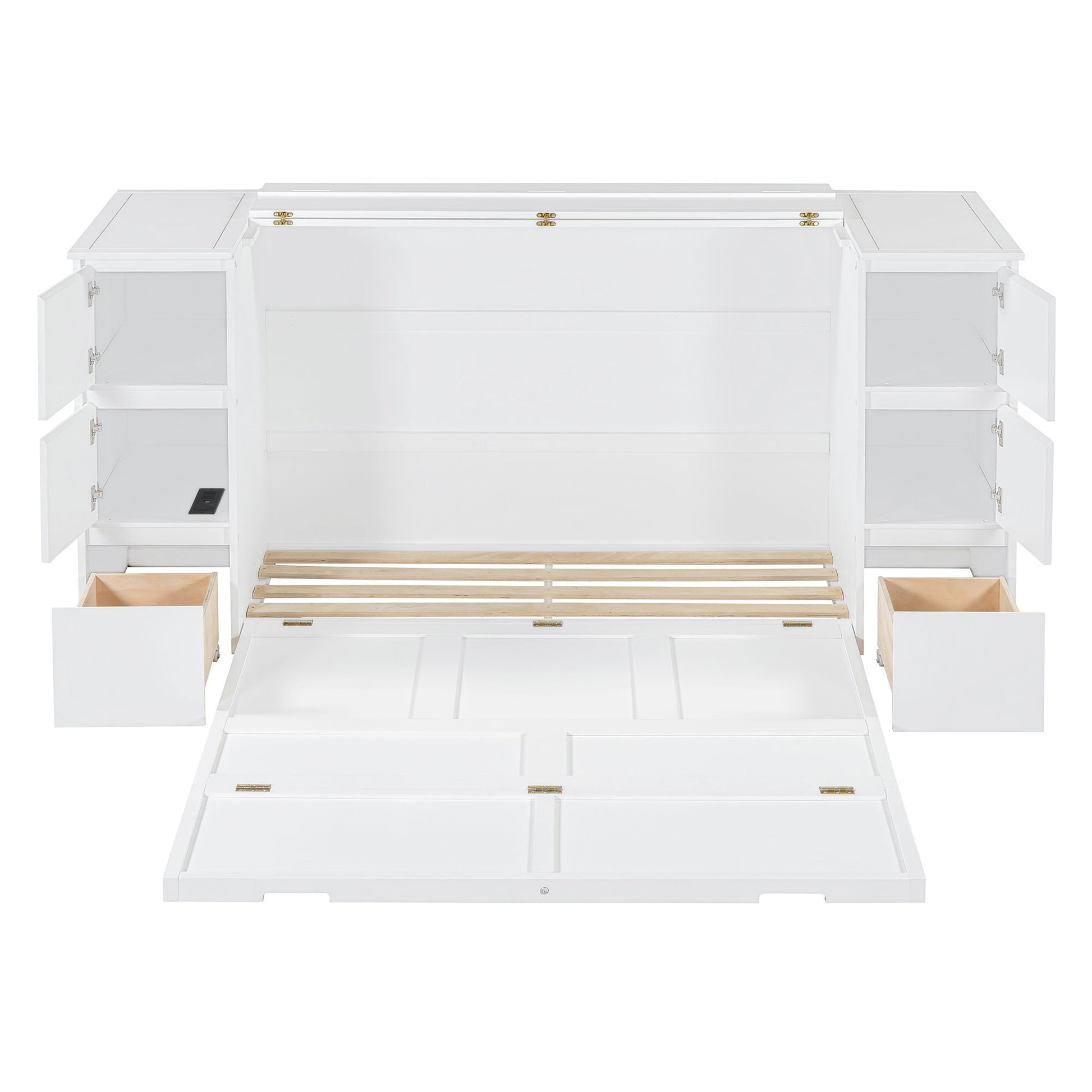 Full Size Murphy Bed With Drawers, Cabinets And USB Ports - White