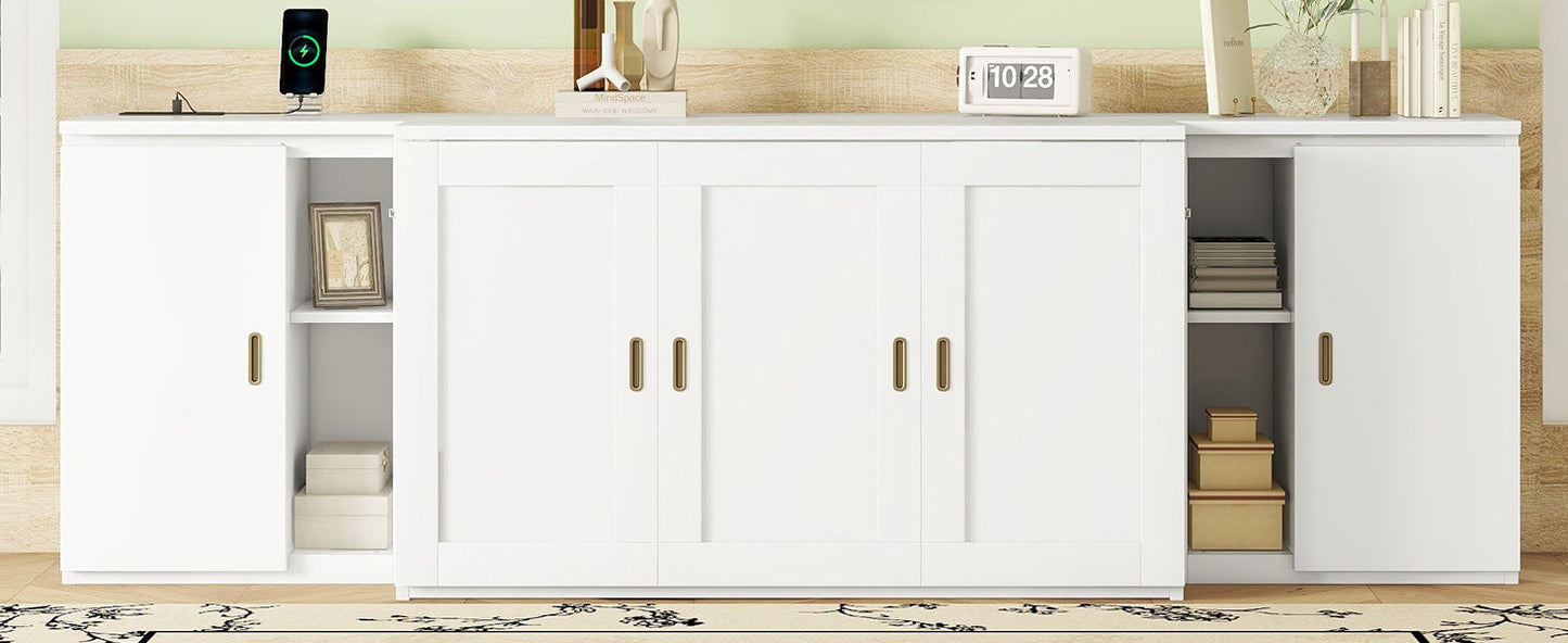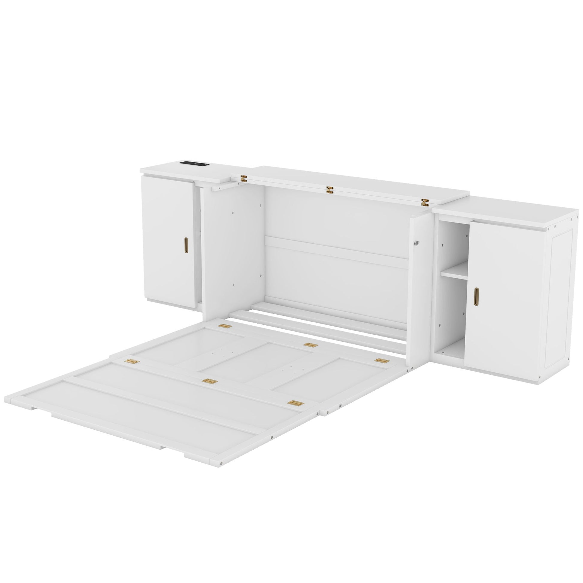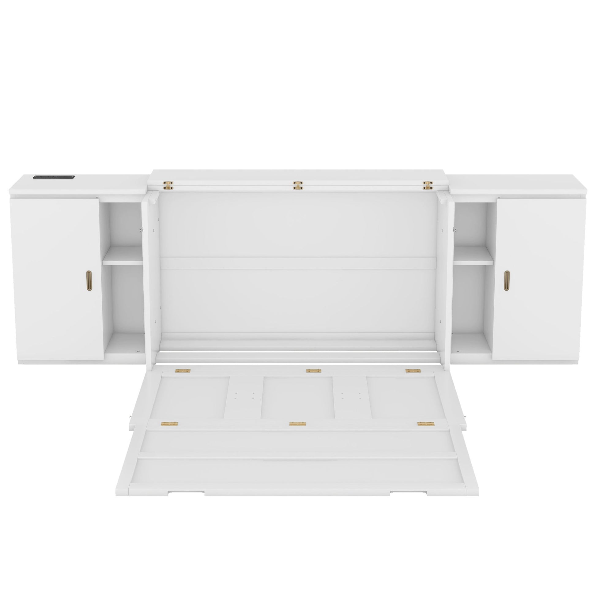 Full Size Murphy Bed With Shelves, Cabinets And USB Ports - White