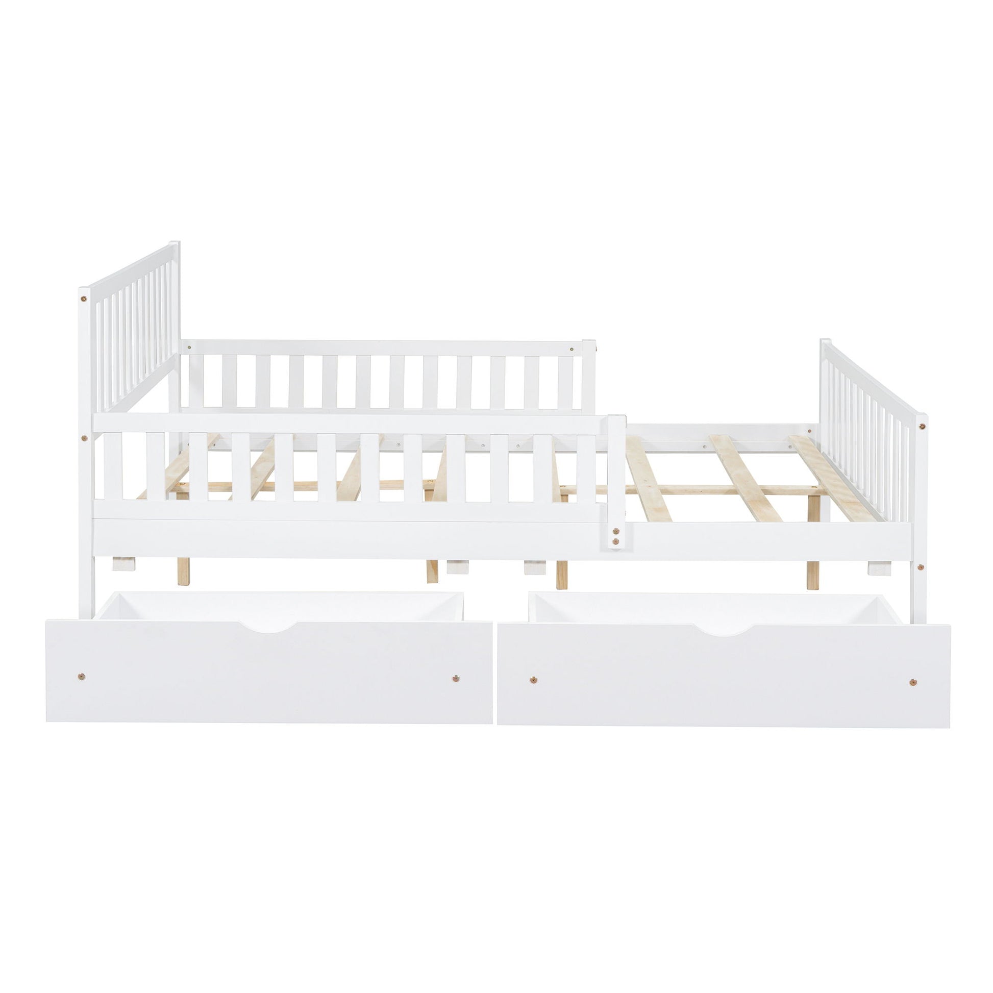 Full Size Platform Bed With Guardrails On Both Sides And 2 Storage Drawers - White