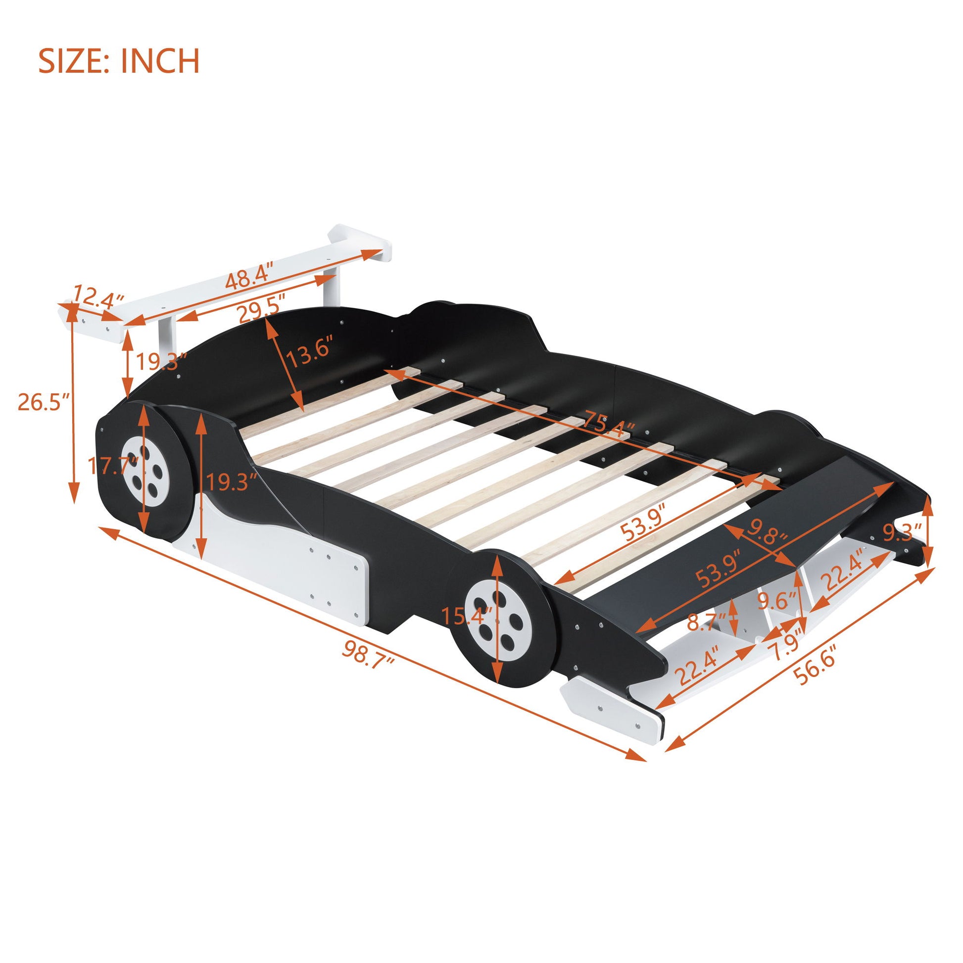 Full Size Race Car Shaped Platform Bed With Wheels - Black