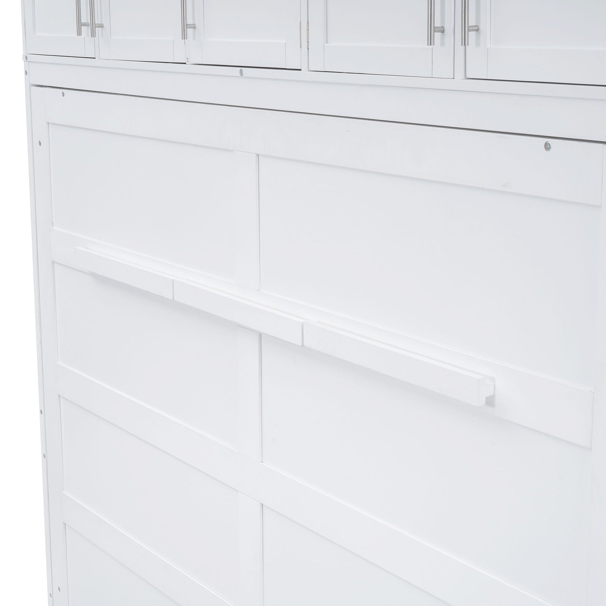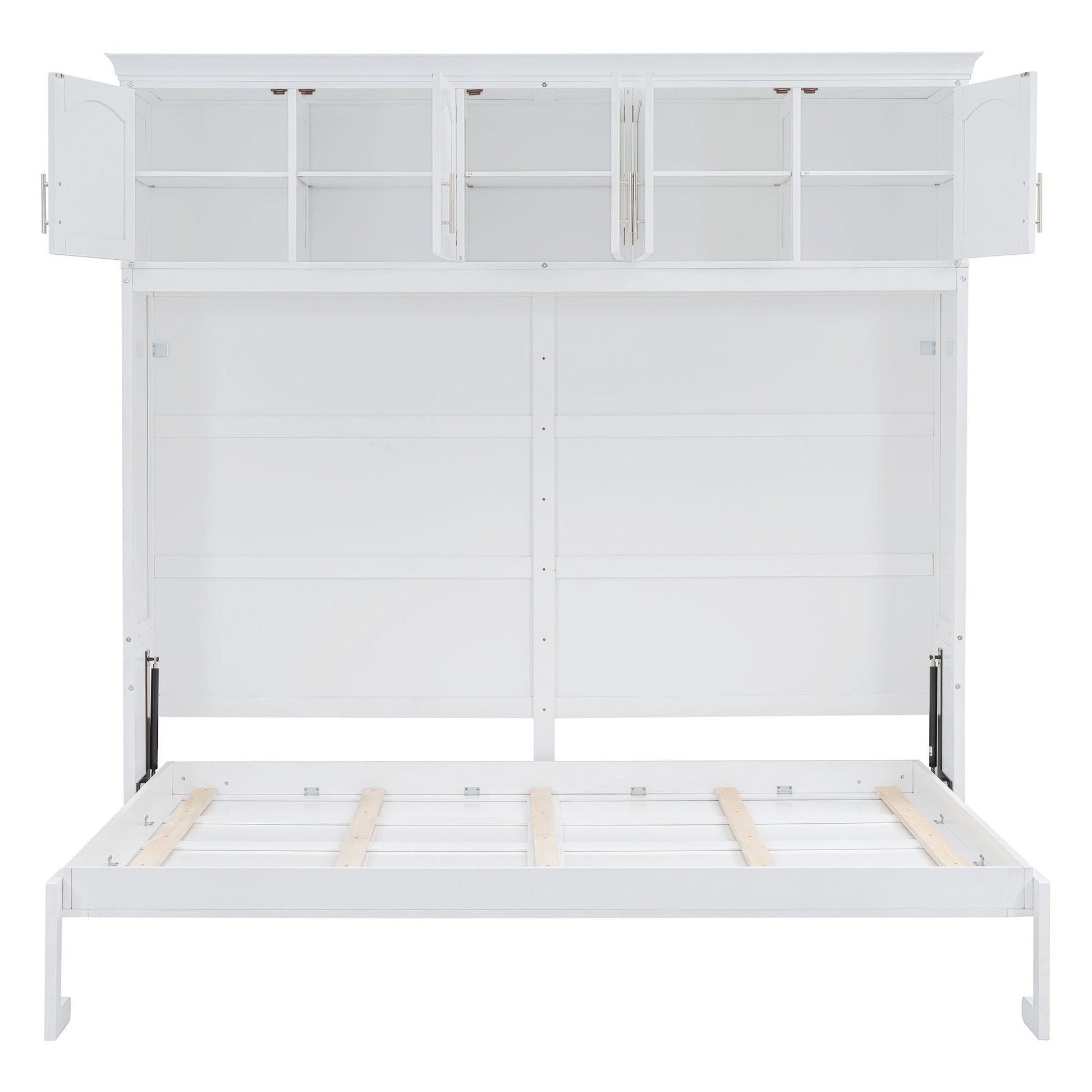 Full Size Space Saving Murphy Wall Bed With Top Cabinets, Flexible Slats - White
