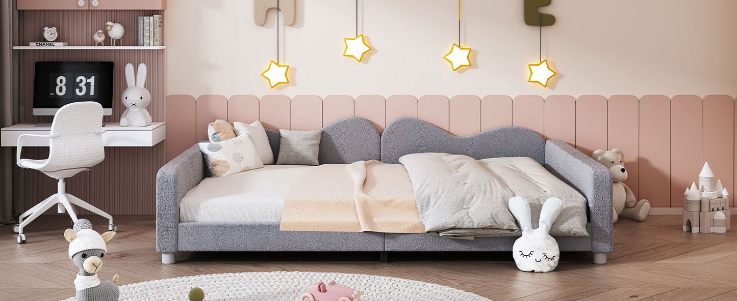Full Size Upholstered Daybed, Sherpa Fabric Sofabed With Cloud-Shaped Backrest, No Box - Spring Needed - Gray