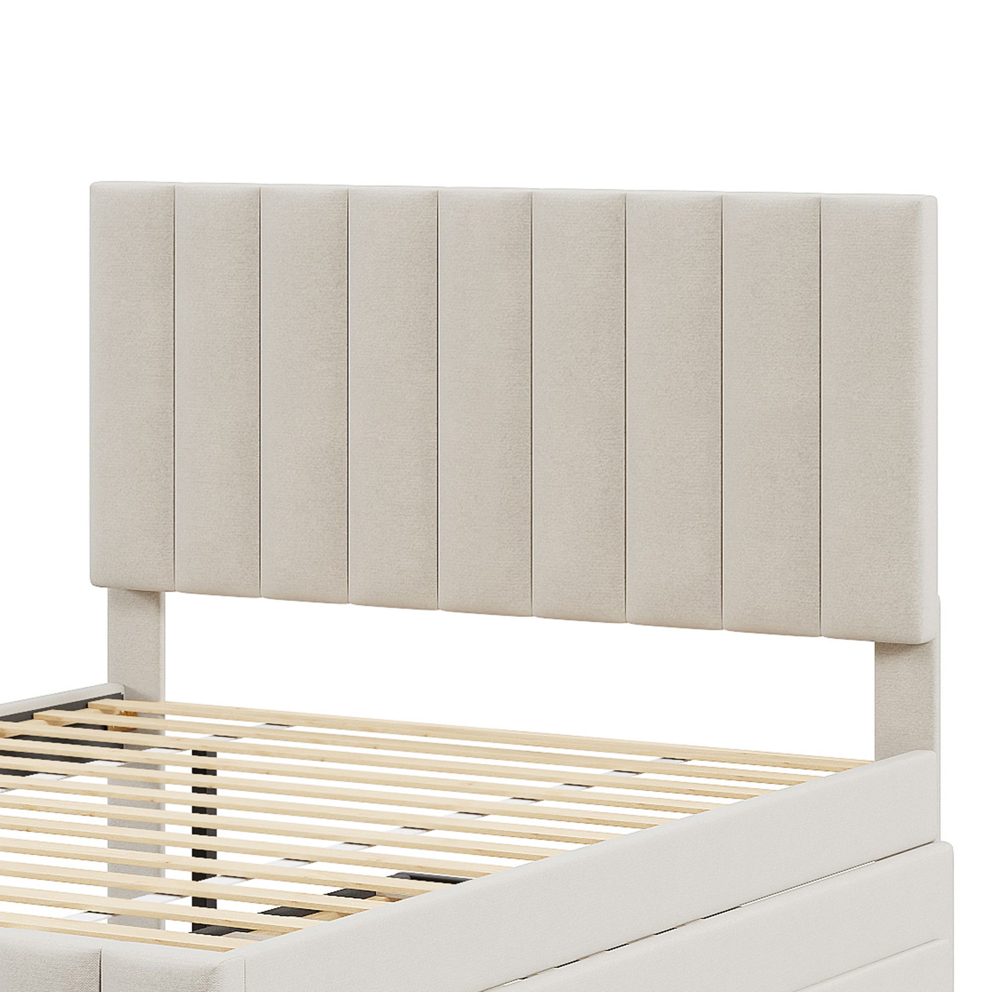 Full Size Upholstered Platform Bed With Twin Size Trundle And 3 Drawers - Beige