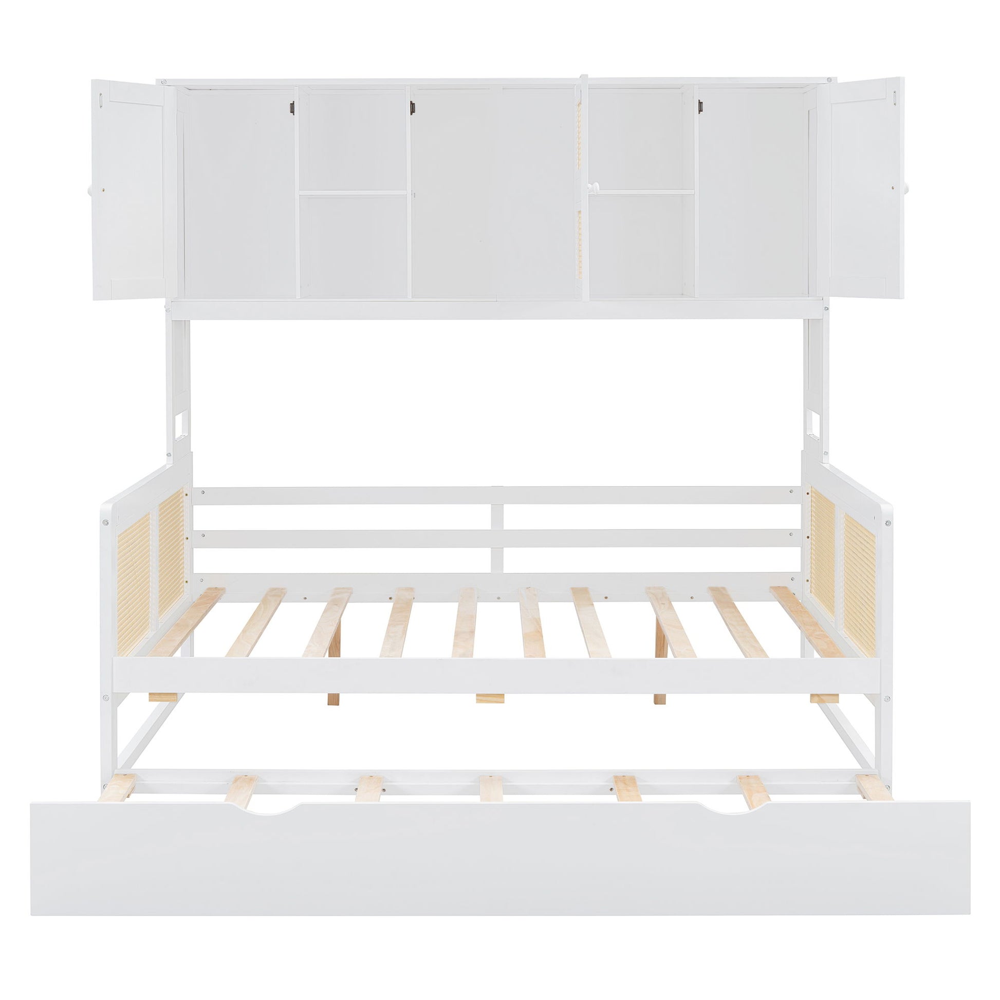 Full Size Wooden Daybed & Twin Size Trundle, And All In One Cabinet And Shelf - White