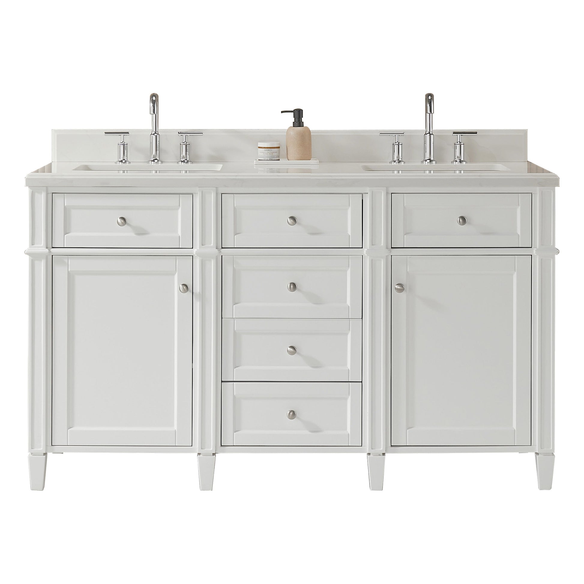 Fully Assembled 60'' Freestanding Double Sinks Bathroom Vanity With Quartz Top - White