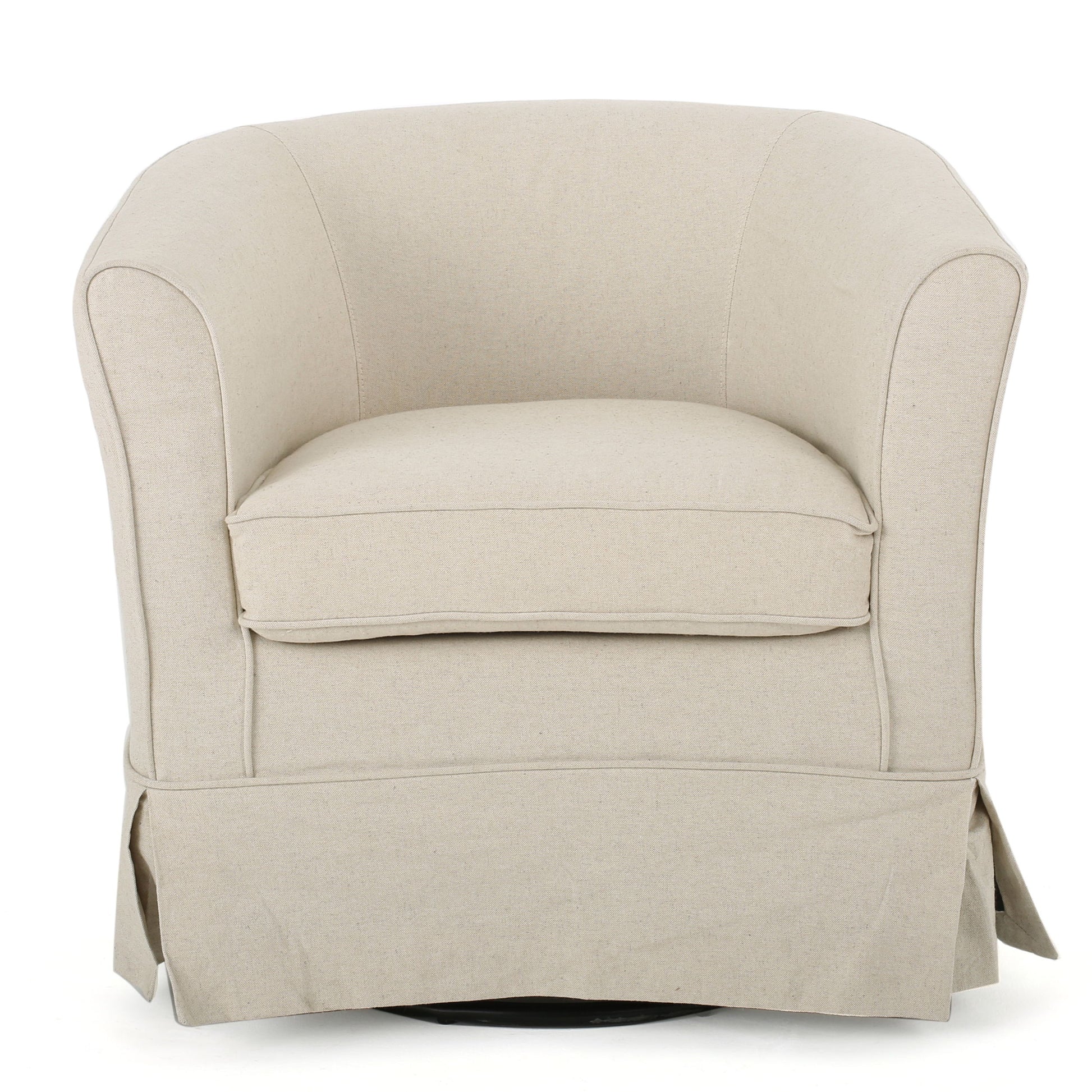 Glitter - Upholstered Swivel Chair With Loose Cover And Curved Back - Natural