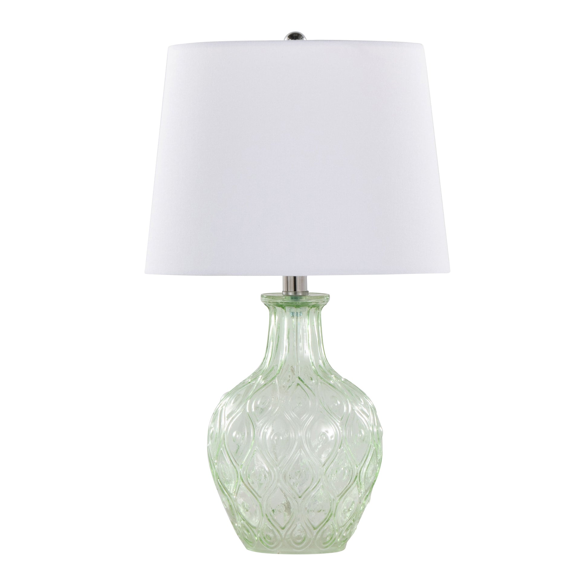 - Charming Design: The Gloria Accent Table Lamps feature a sleek glass jug-shaped base with a textured pattern, complemented by a minimalistic drum shade, adding an airy country charm to any space.