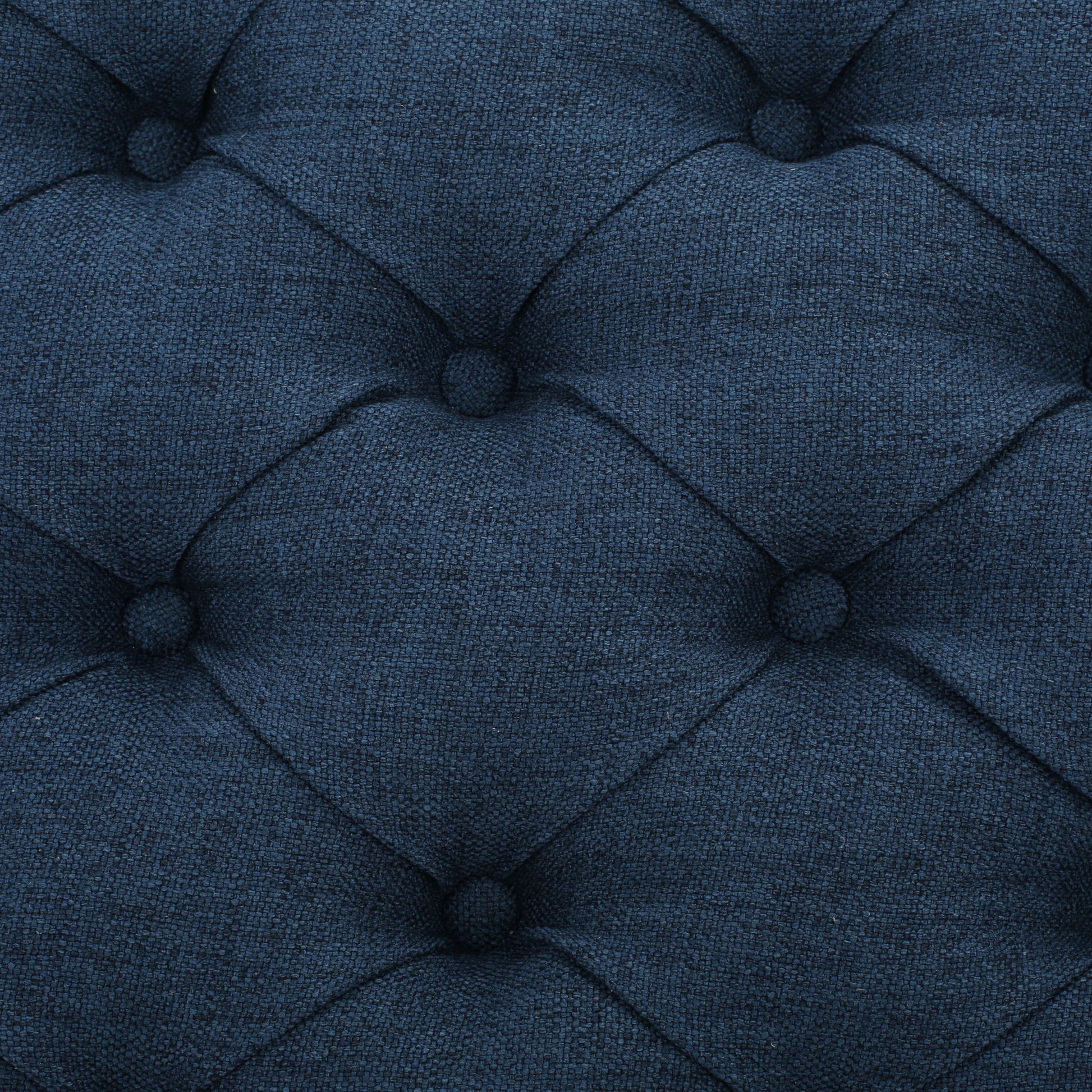 - Stylish Design: Dark blue fabric and tufted top add elegance.