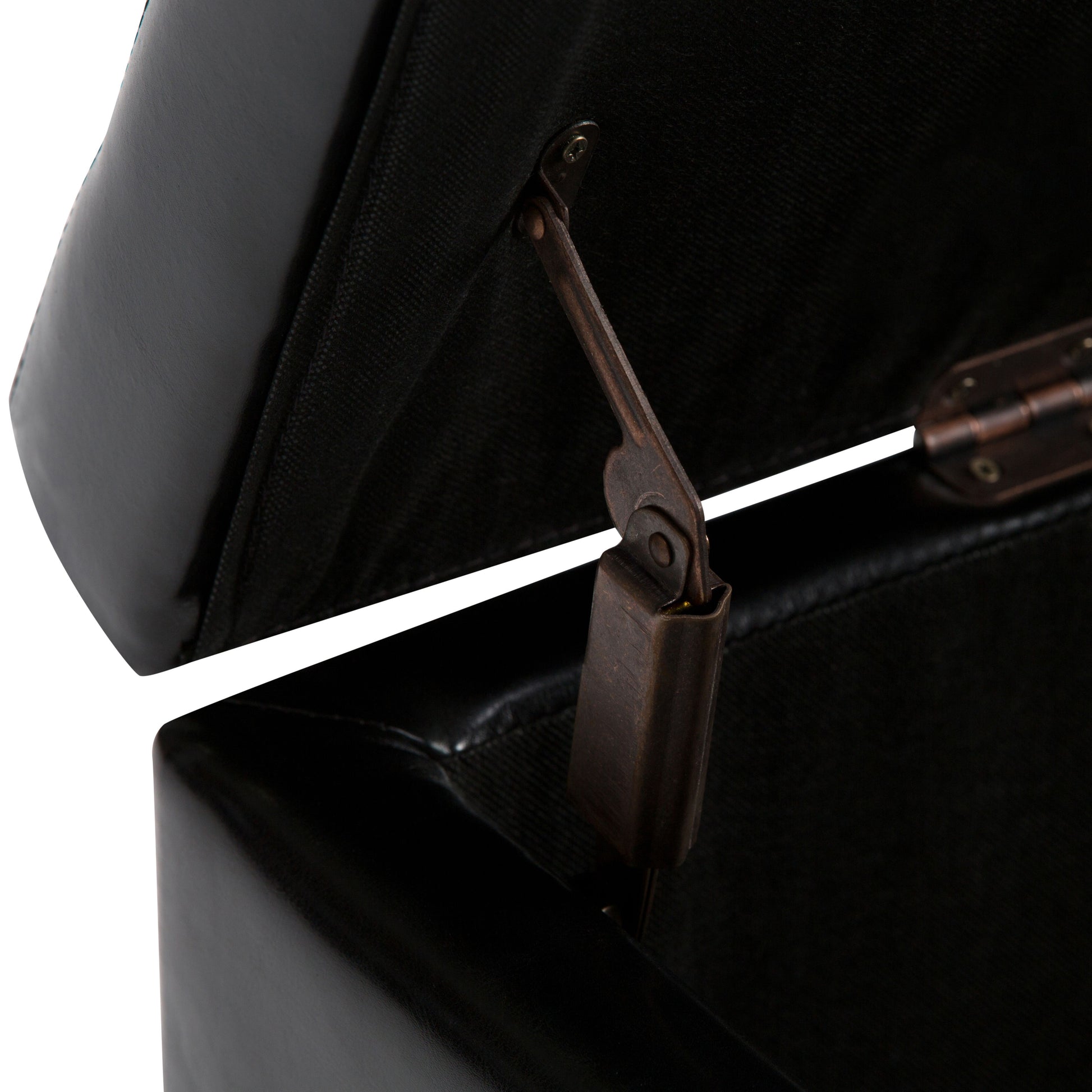 - Upholstered with a durable Midnight Black Vegan Faux Leather